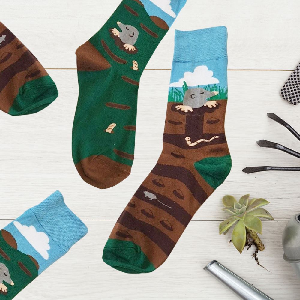 Veselých ponožek není nikdy dost! Ponožky s krtečkem udělají radost sestře či kamarádce. Oživí nudný outfit a vylepší každý šatník. Nasaďte ponožky, vyhrňte nohavice a hurá do ulic. Díky příjemnému materiálu jsou velmi pohodlné při nošení. Veselé ponožky mají univerzální velikost. Jejich hlavní přednost spočívá v rozdílnosti a roztomilosti ponožek. Každá ponožka v páru má jiný design.