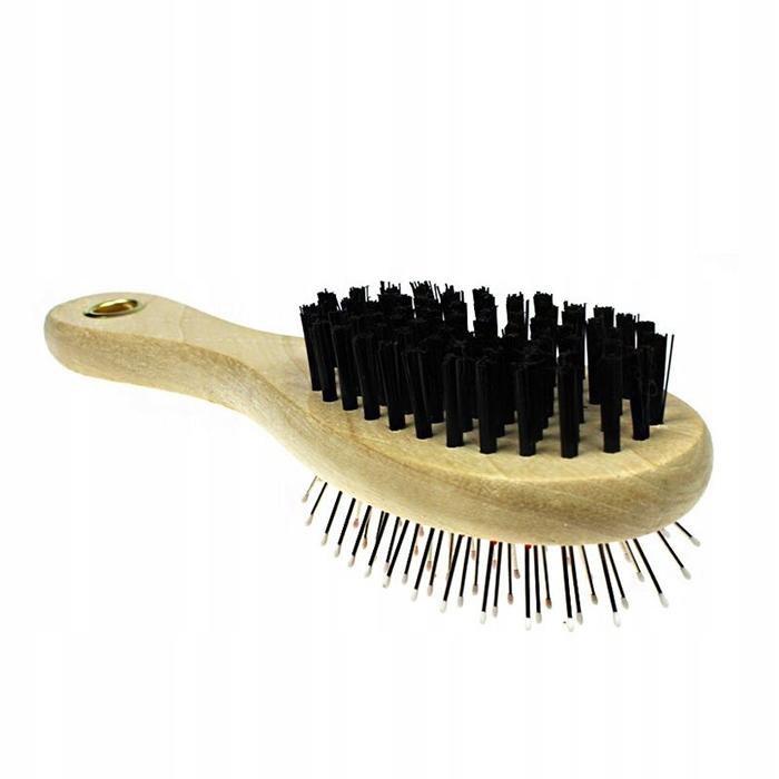 Oboustranný kartáč slouží k péči o srst a podsadu zvířat. Je vyrobena ze dřeva, které minimalizuje obtěžující statickou elektřinu v srsti.