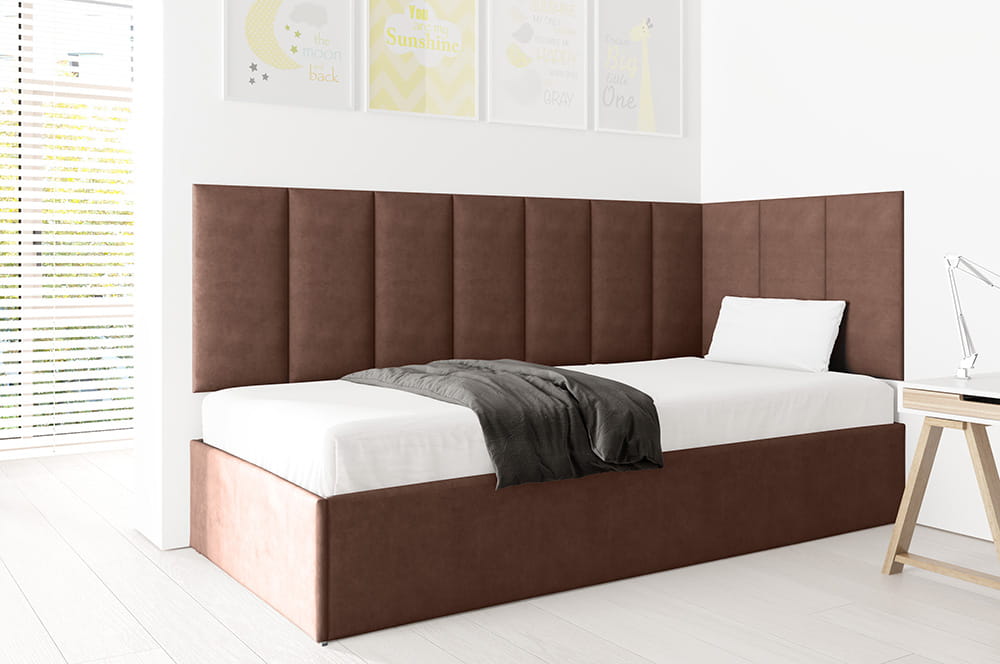 Hledáte elegantní povrchovou úpravu stěn, která dodá místnosti charakter? Naším návrhem jsou čalouněné panely. Dostupné jsou v módních látkách jako Trinity (plyš) a eko-kůže. Kombinací několika kousků získáte zajímavý vizuální efekt. Čalouněné panely jsou perfektní jako podpěra hlavy u postele. Měkká pěna a příjemná textura látky použitá na výrobu panelu umožní čtení knih a sledování televize v sedě.