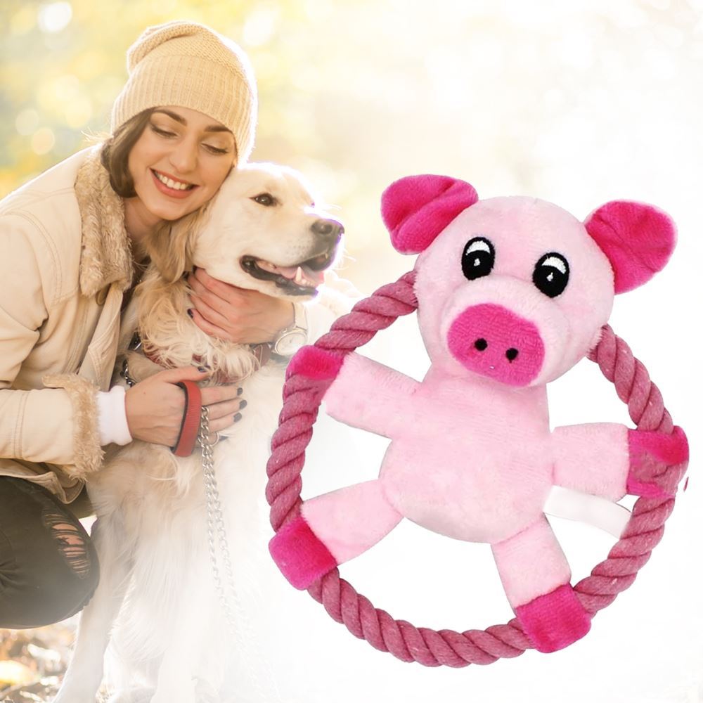 Interaktivní hračku pro psy - plyšové prasátko, si zamiluje každý domácí mazlíček a z tlapek ho už nepustí. Hračka vydává pískající zvuk při zmačknutí bříška, hračka je také vhodná pro kousání nebo přetahování.