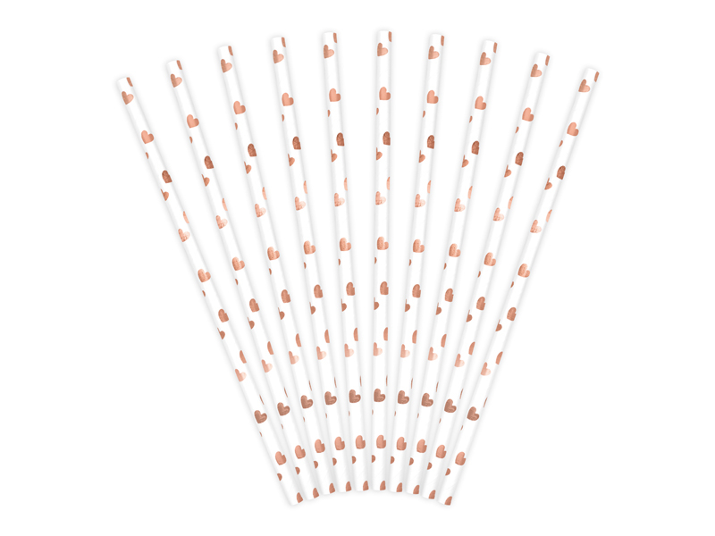 PCo Papírové brčka - motiv srdíček, rose gold 19.5cm