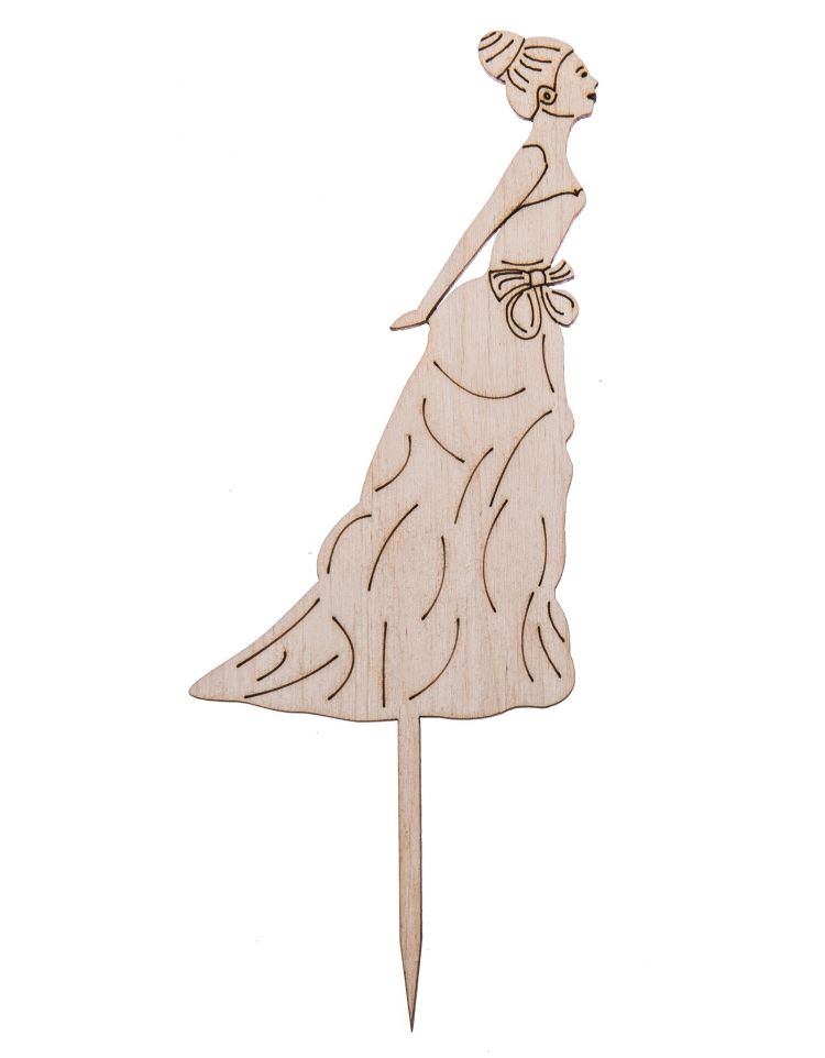 Dřevěná zapichovací ozdoba ve tvaru novomanželů. Výrobek je vhodný k dozdobení nebo k dekoraci.