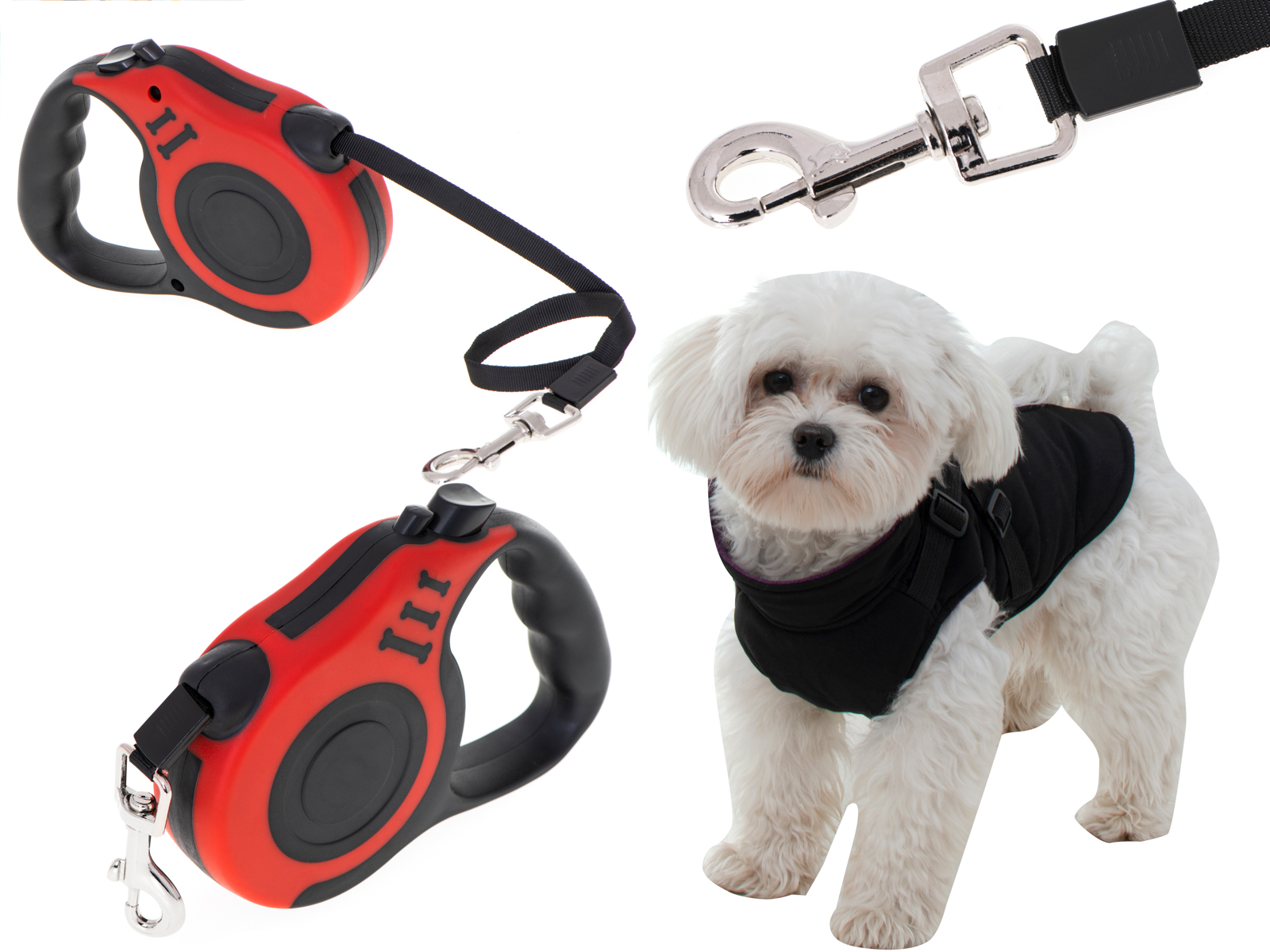 Odolný popruh a chromovaná karabina udrží malá a středně velká zvířata. Moderní systém navíjení a odvíjení zabrání zamotání vodítka a vy získáte plnou kontrolu nad svým mazlíčkem.