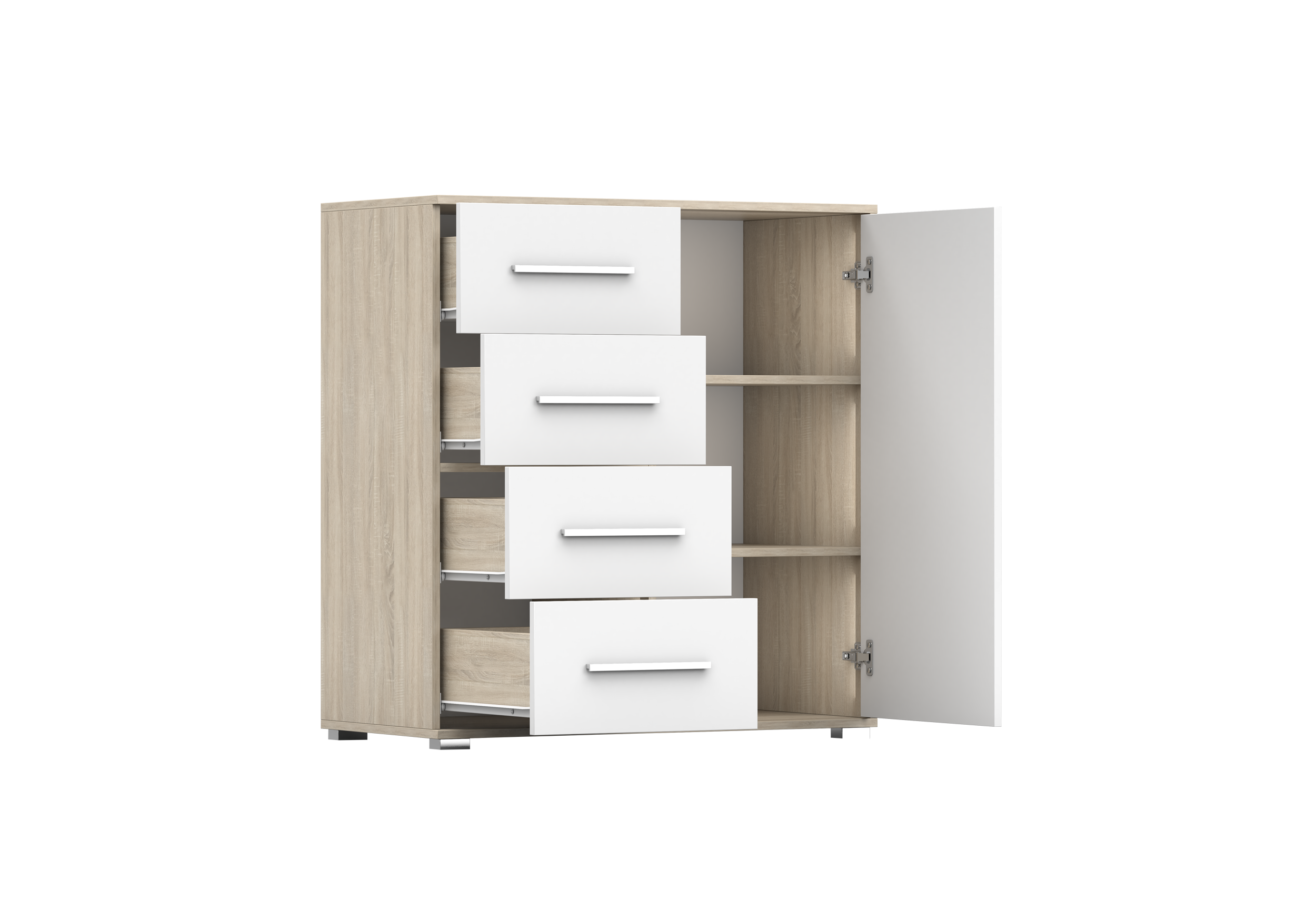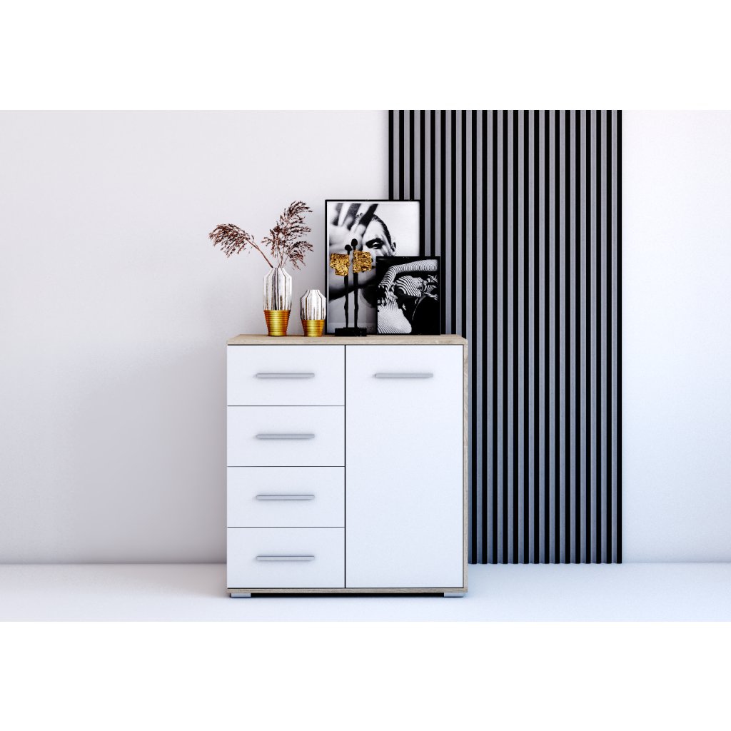 IDZ Komoda FRIDA MINI 1D4S 01, 90 cm Bílá / Dub Sonoma