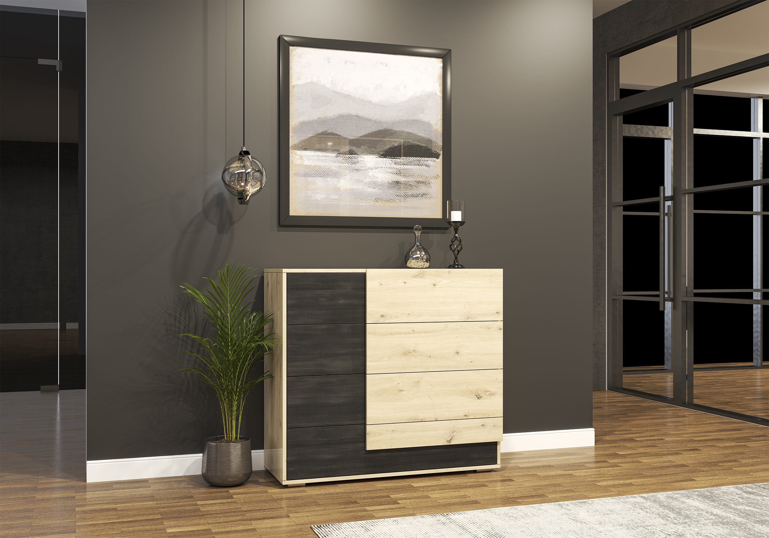 IDZ Komoda BAFRA 4S, 100 cm Dub Artisan/Norská borovice
