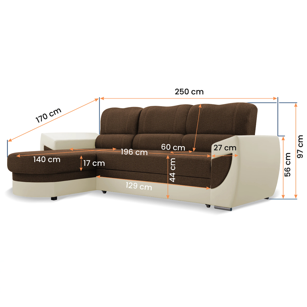 Sedačka TRENDI ve tvaru L je spolehlivým parťákem do každého obýváku. Nabízí spoustu místa pro pohodlné sezení pro rodinu, návštěvy, ale i chvíle, kdy chceš jen natáhnout nohy a užívat si klid. Potahy jsou ušité z tkanin s certifikací OEKO-TEX®, takže si můžeš být jistý, že jsou šetrné k tobě i k přírodě. A aby ladila i s tvým vkusem? Vyber si barvu látky – sedačku nabízíme v několika elegantních variantách. ️ Pohodlí pro každý den ️ Stále místo k relaxaci Řešení s úložným prostorem Výběr látky Pohodlí na každý den ✨ Elegantní vzhled Jednoduchá montáž V balení najdeš: Doprava až domů Podělte se s námi o Váš názor. Vaše zkušenost pomůže ostatním zákazníkům při výběru té správné postele pro jejich pohodlný spánek. Sedačka je dodávána bez dekorací zobrazených na ilustračních fotografiích. Napište nám, rádi poradíme s čímkoli, co vás zajímá.Pohodlí ve tvaru L(ásky) k odpočinku a relaxu