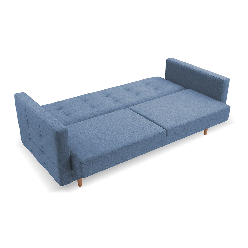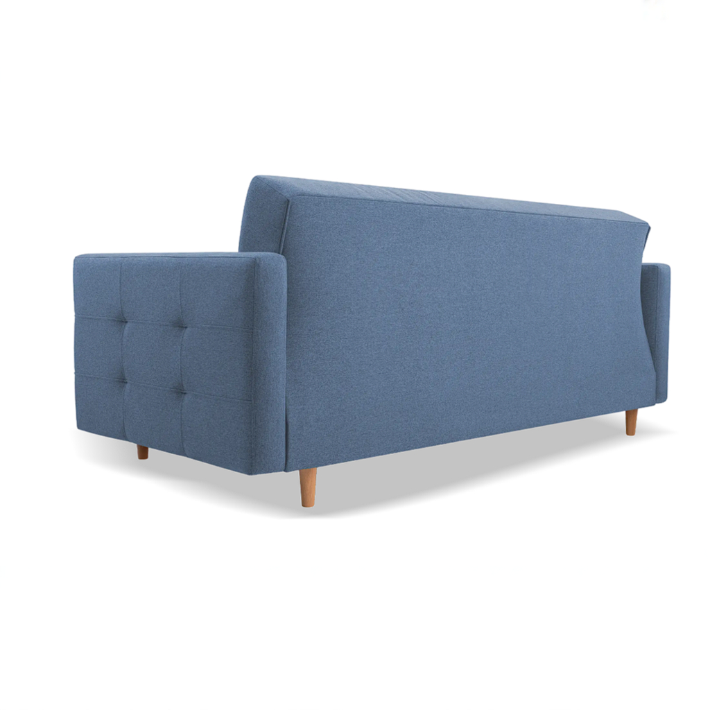 Korpus pohovky, soustružené dřevěné nožky, spojovací materiál a montážní návod.