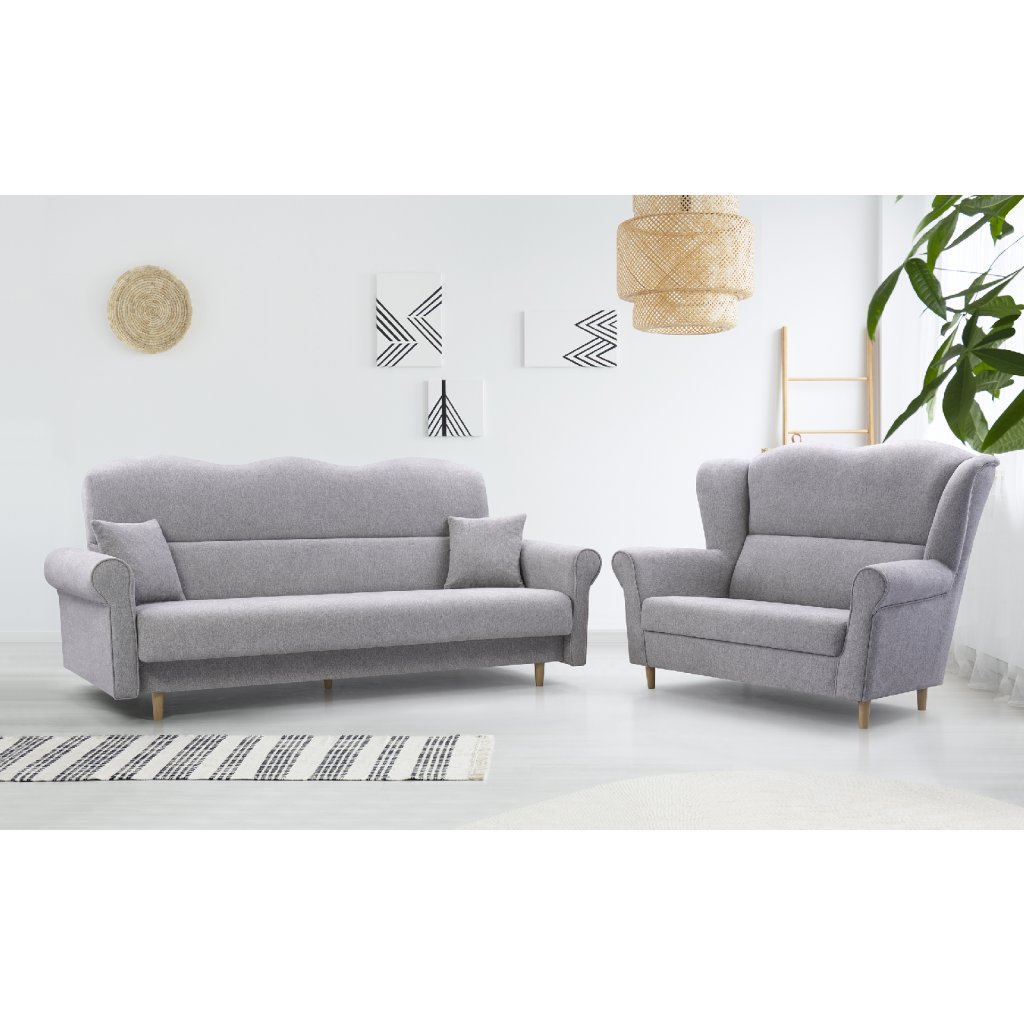 Korpus pohovky, soustružené dřevěné nožky, spojovací materiál a montážní návod.