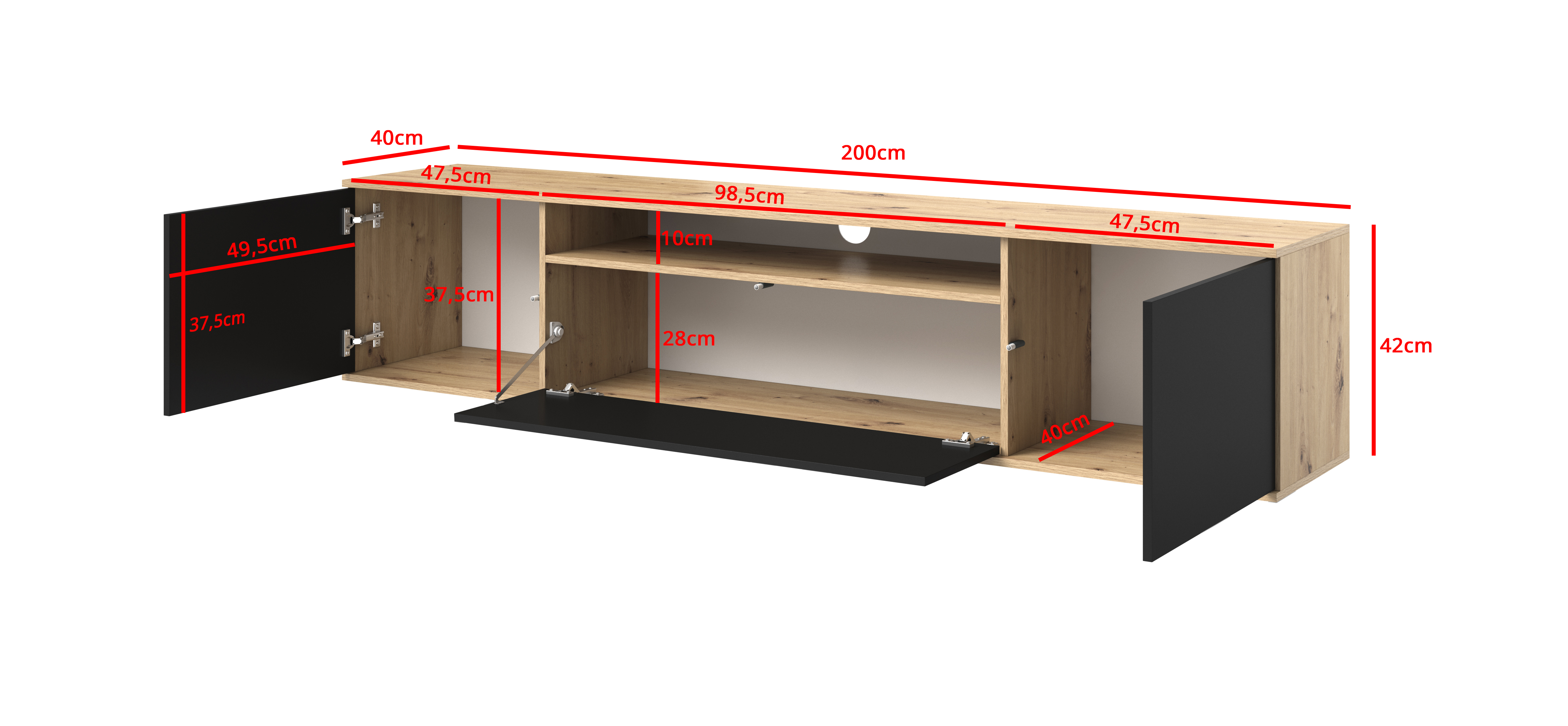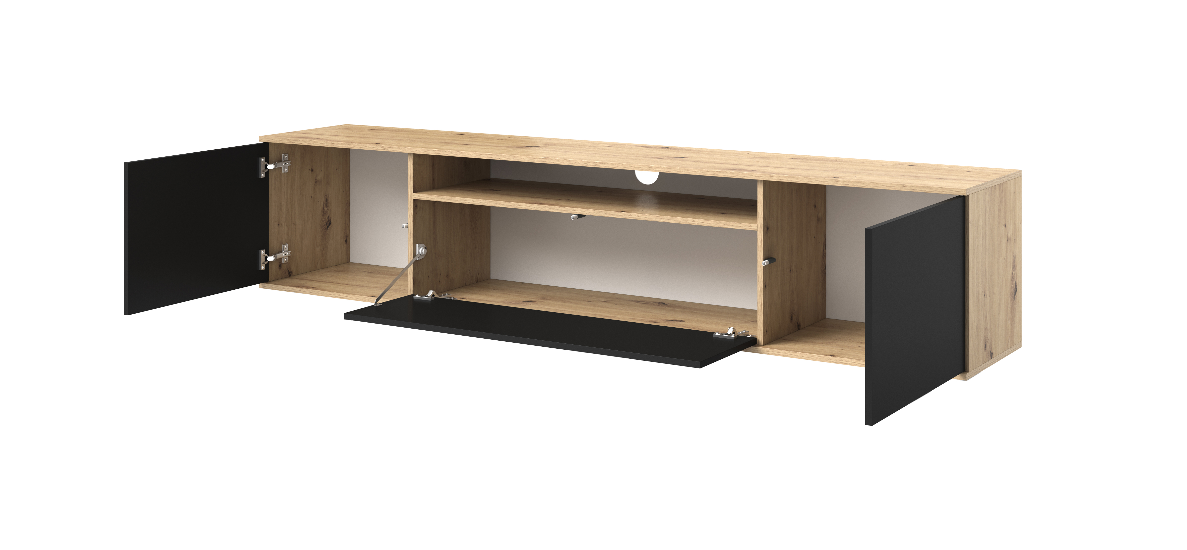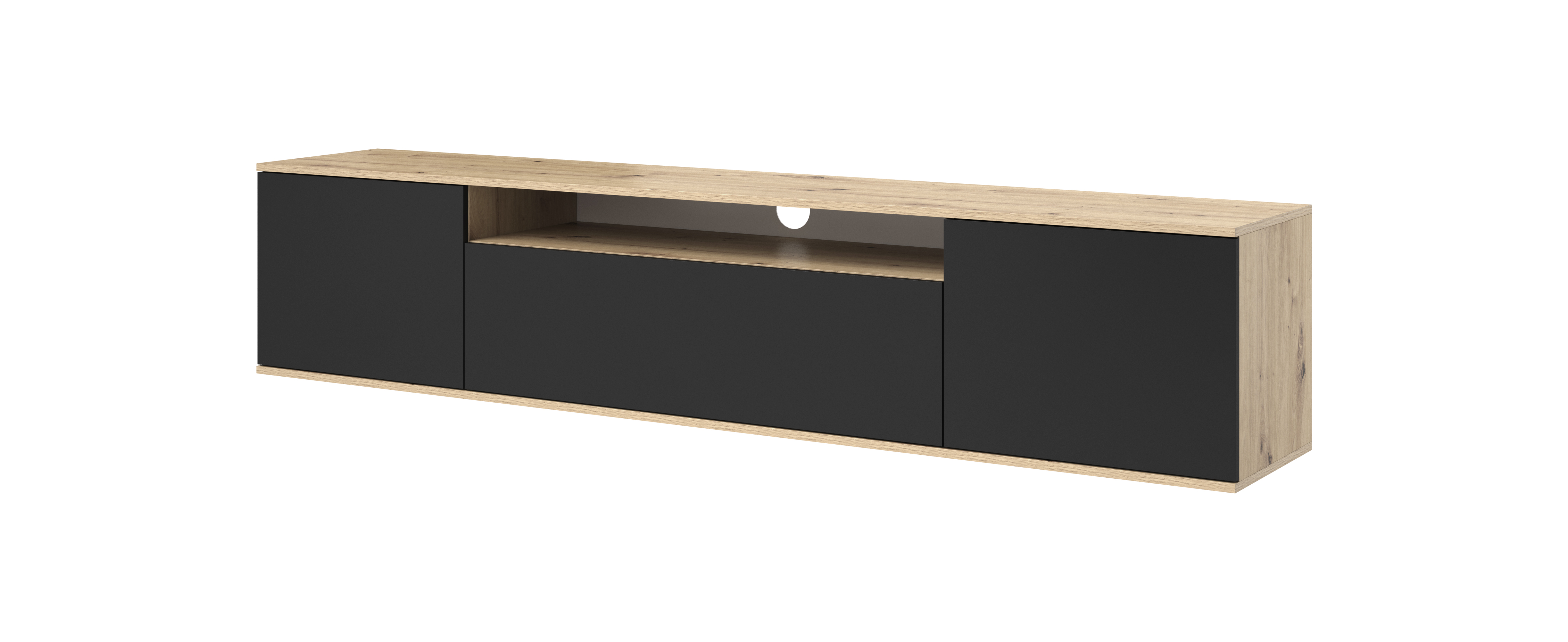 Eka Závěsný stolek pod televizi EMI 200 cm - Dub Artisan + Černý mat