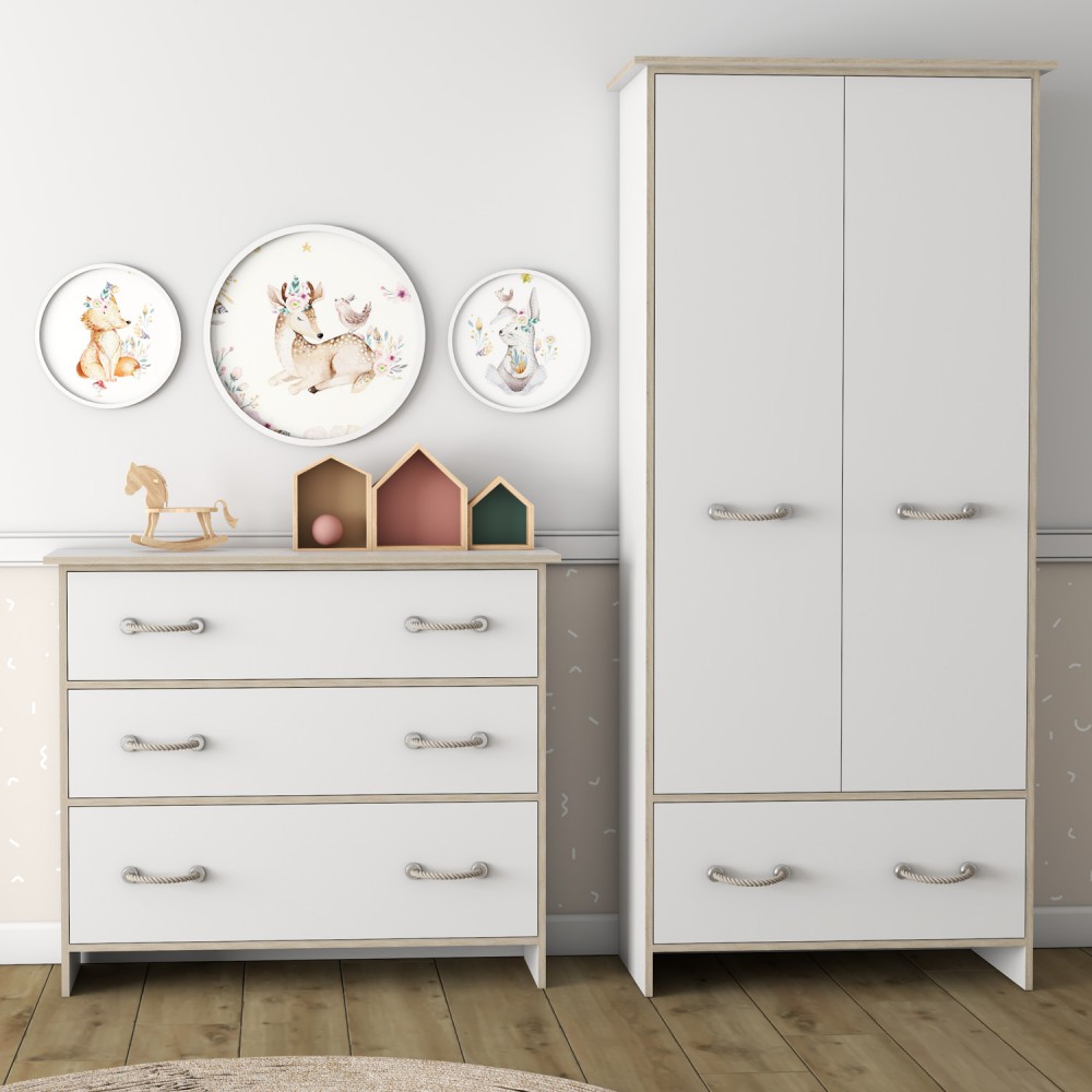 IDZ Komoda KOSMO 3S 02, 108 cm Bílá/Dub Sonoma