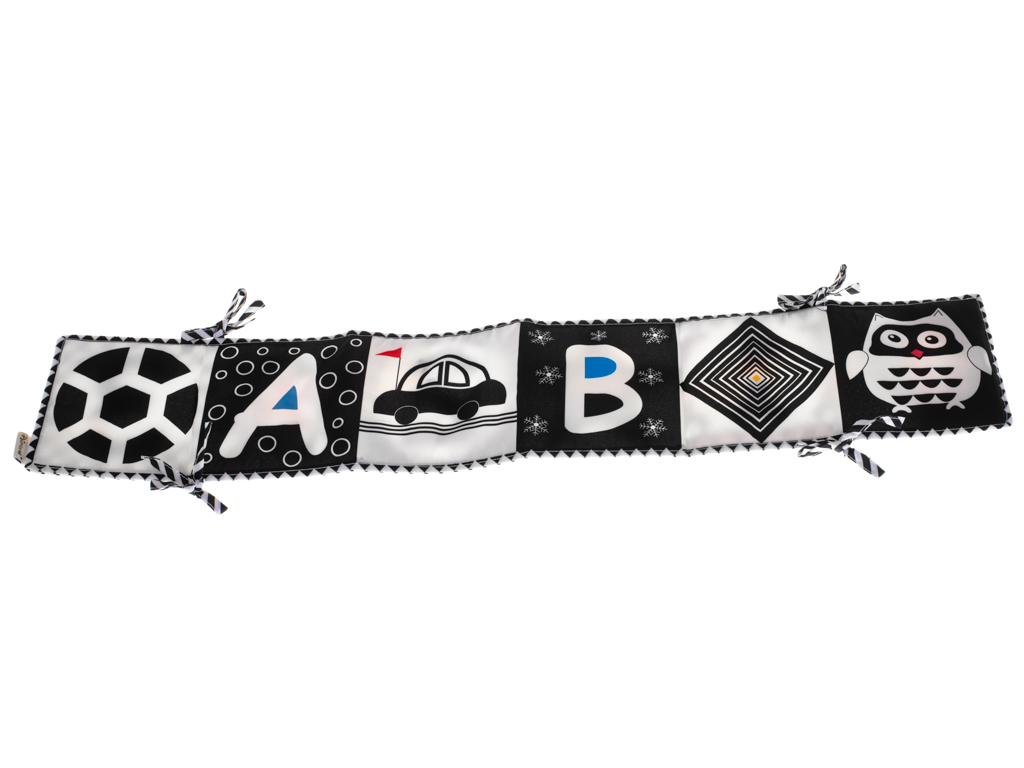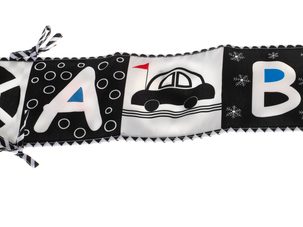 Kniha ve tvaru harmoniky se bude skvěle hodit jako ochranná podložka do postýlky. Pomocí provázků jej připevněte k příčkám.