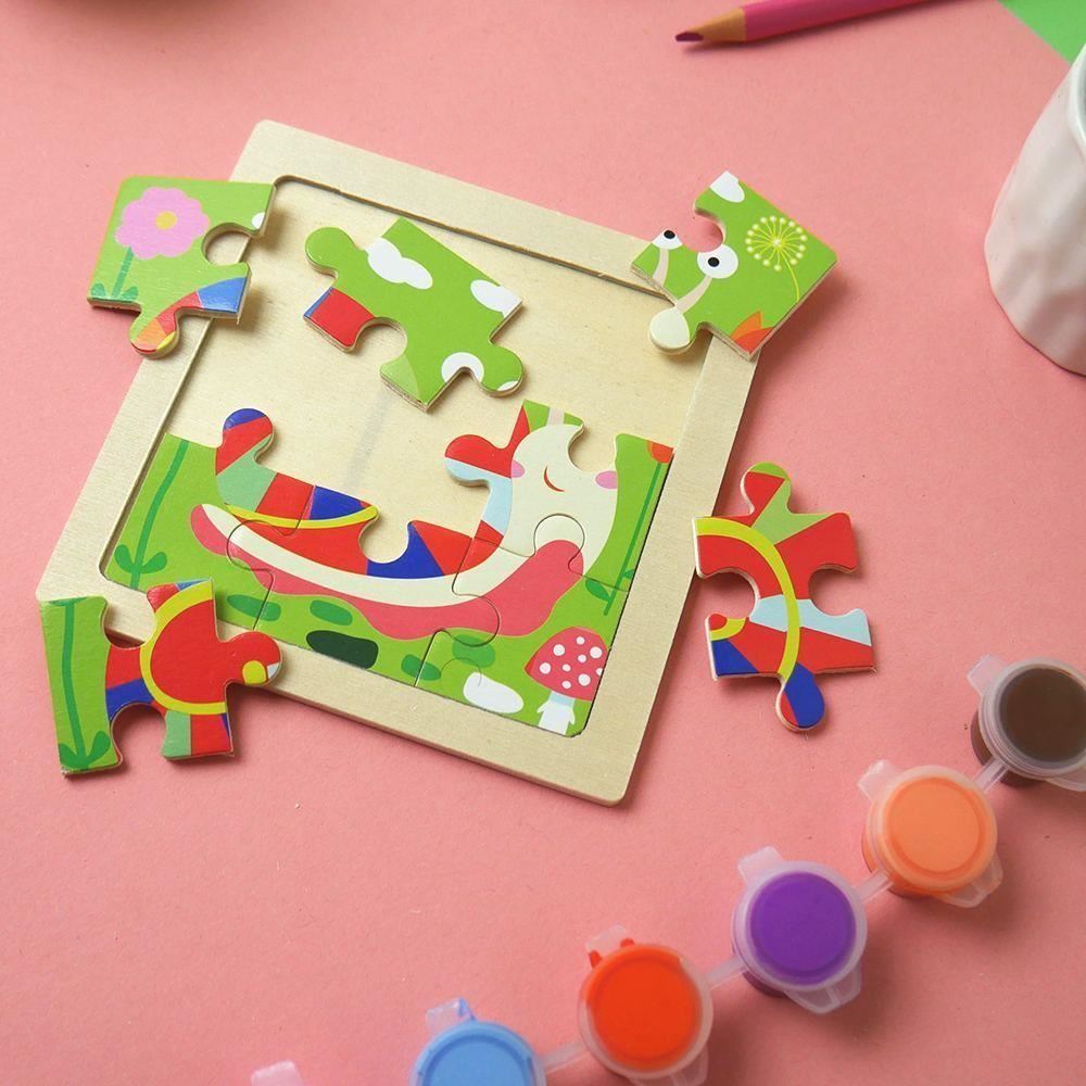 Dřevěné barevné puzzle, se bude líbit každému dítěti. Kreativní puzzle poskytnou spoustu zábavy a povzbudí vaše dítě k objevování světa tvarů a předmětů.