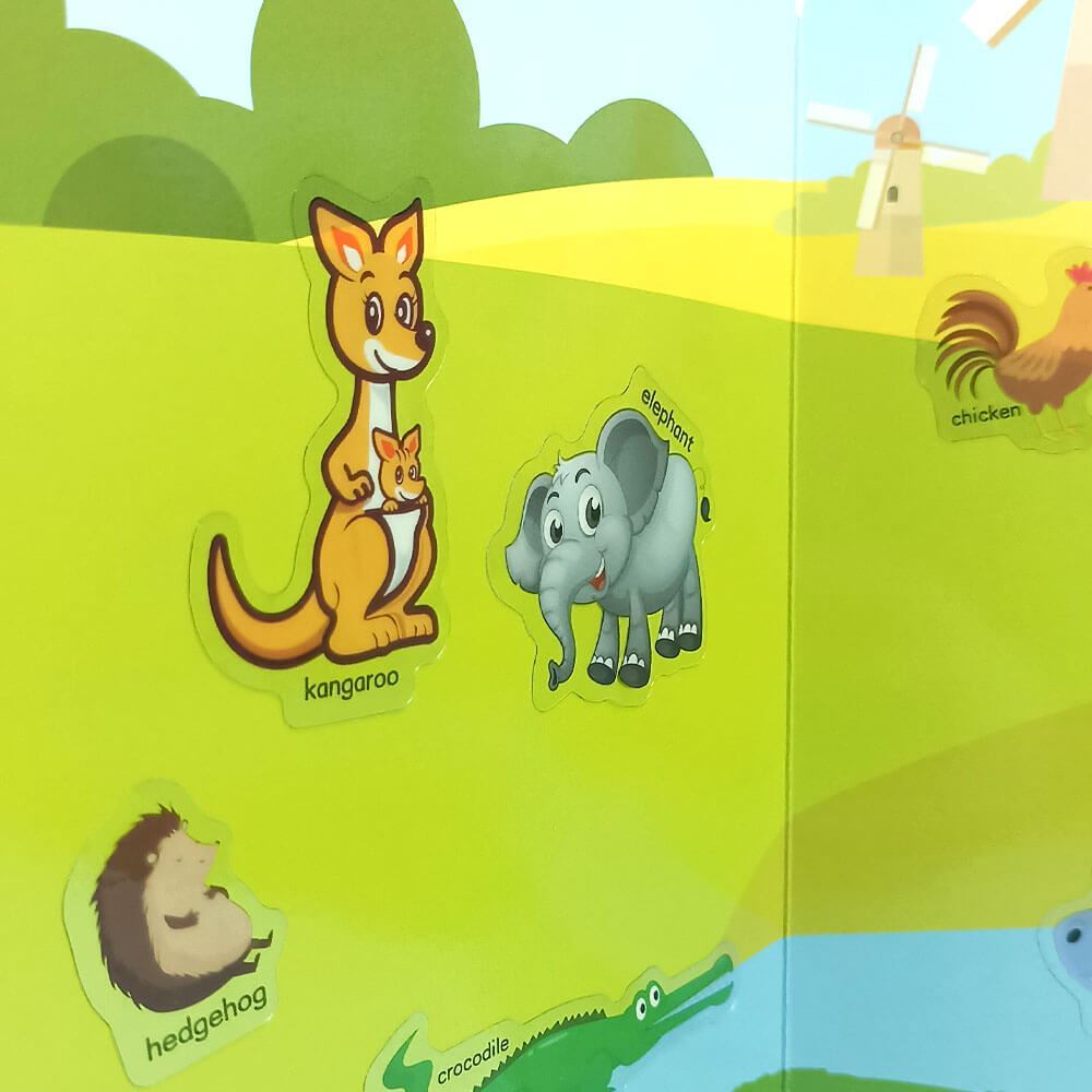 Jedná se o sadu, se kterou se děti hravou formou naučí názvy všech zvířátek žijících na farmě i v divočině. Samolepky jsou speciální v tom, že nejsou jako klasické samolepky opatřeny lepidlem. Pouze přilnou k papíru a lze je tak opět sejmout a nalepit jinam.