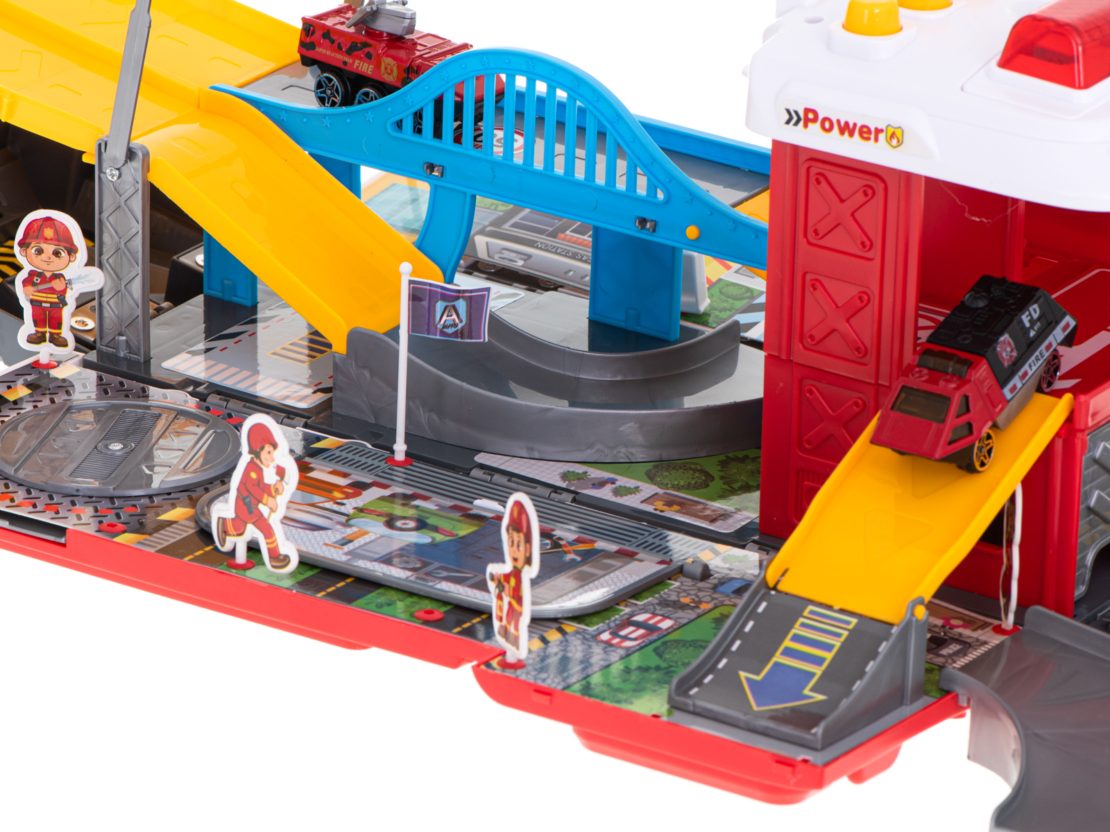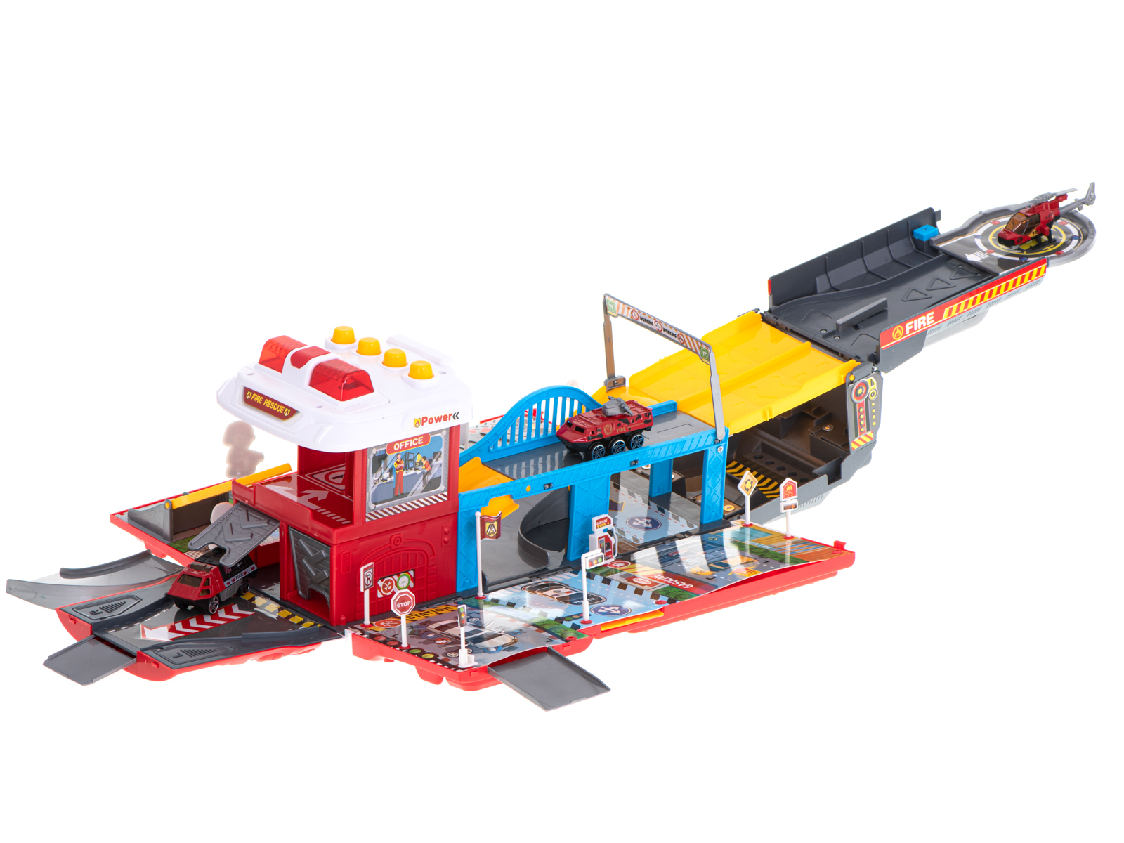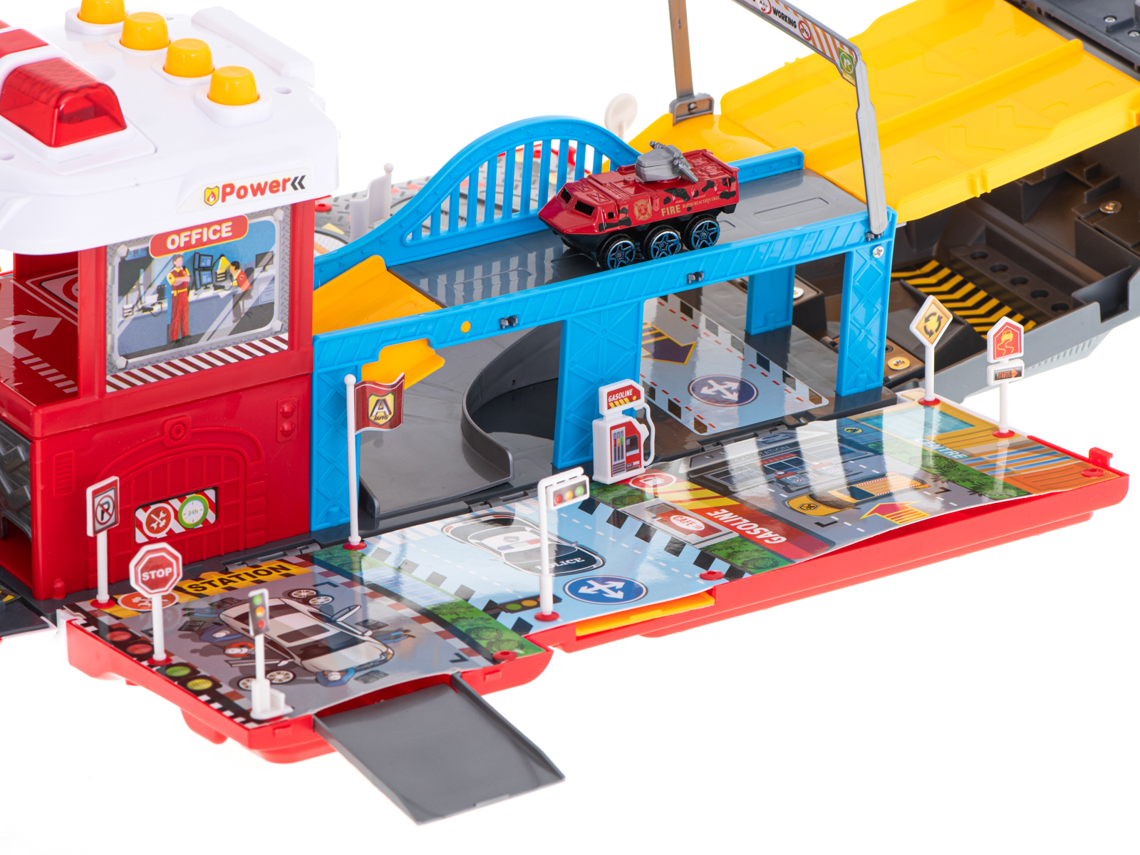 Velkým lákadlem je možnost přeměny auta na hasičskou stanici s parkovištěm a heliportem.