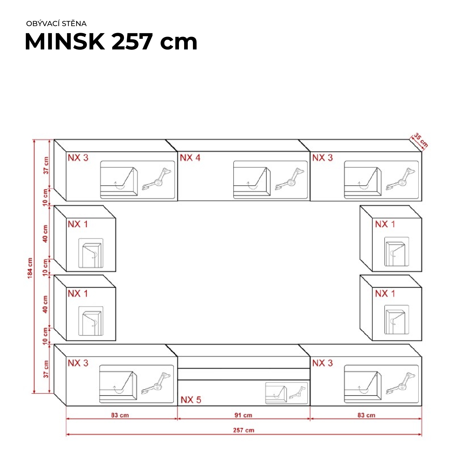 Ral Obývací stěna MINSK 2, 257 cm - Bílý lesk