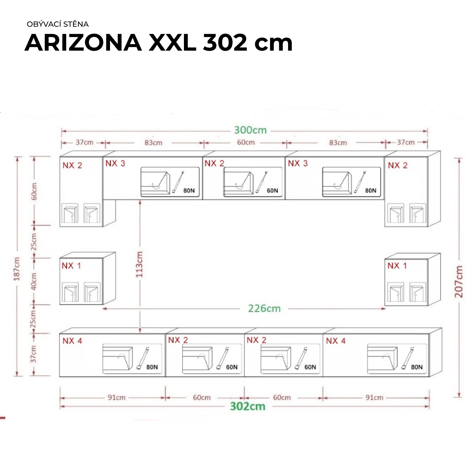 Ral Obývací stěna ARIZONA XXL, 302 cm - Bílý lesk