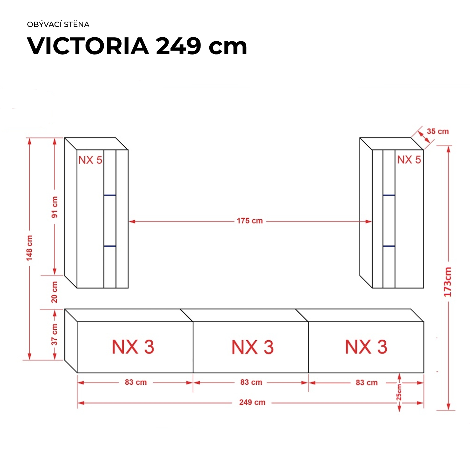 Ral Obývací stěna VICTORIA 249 cm - Bílý lesk
