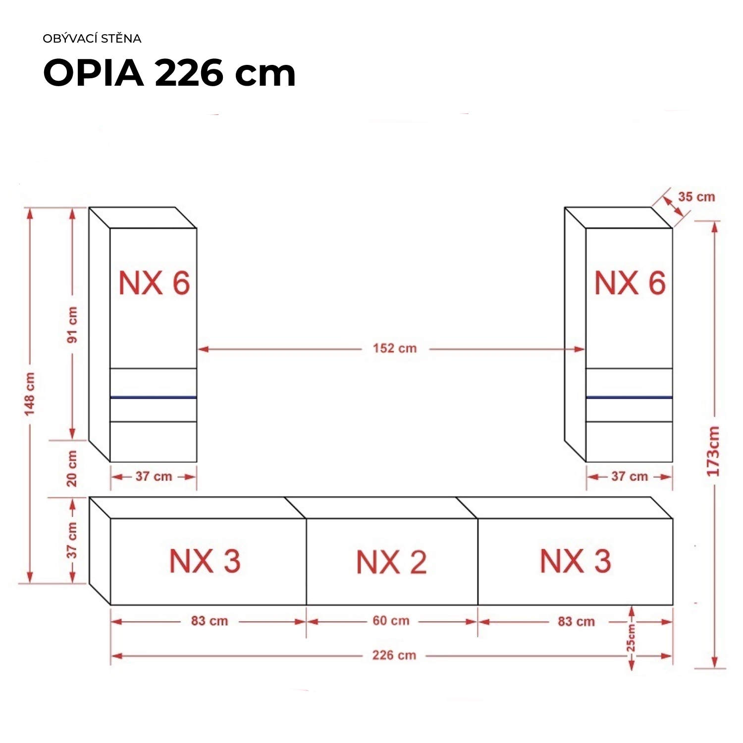 Ral Obývací stěna OPIA 5, 226 cm - Černý lesk