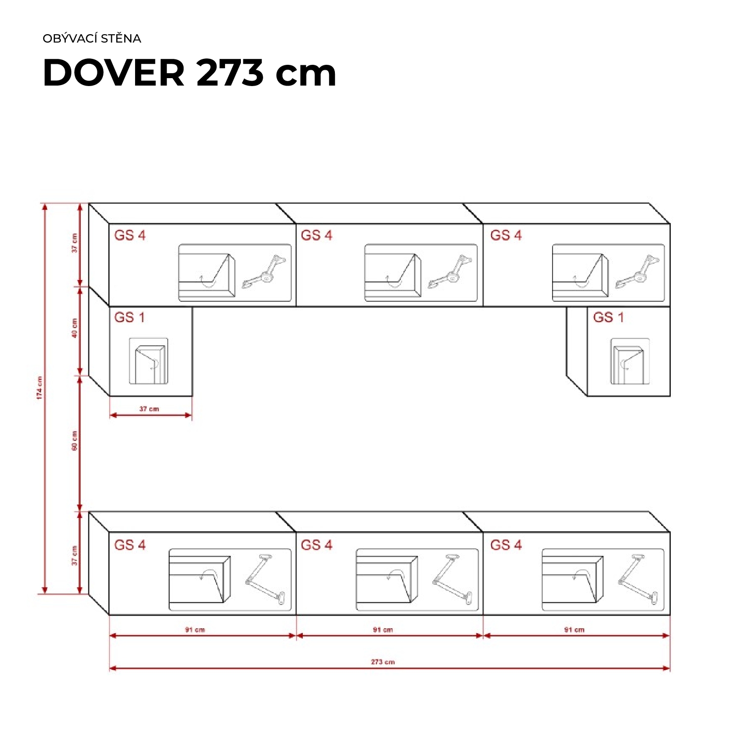 Ral Obývací stěna DOVER 6, 273 cm - Bílý lesk