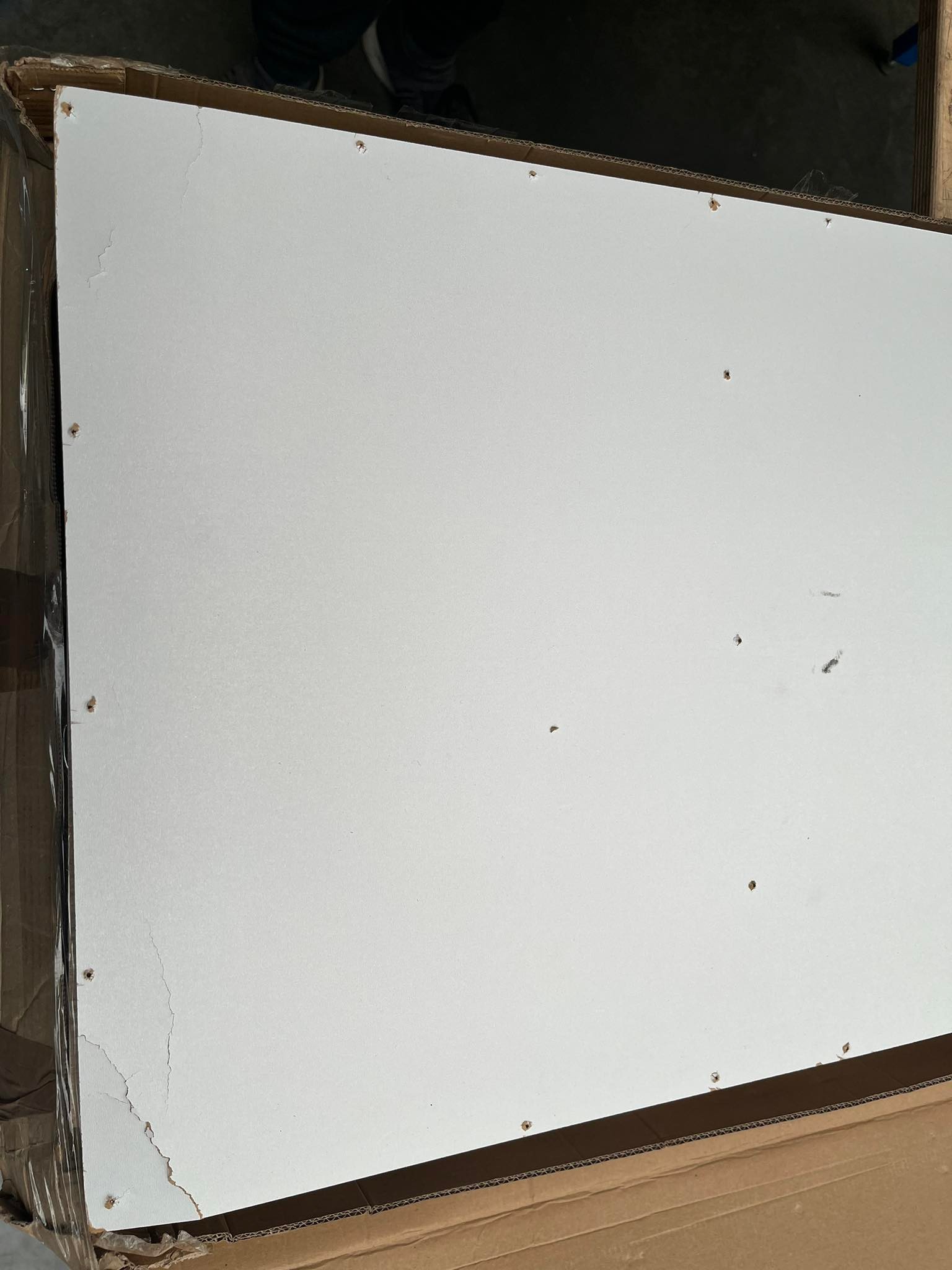 2. jakost - poškozená sololitová deska, šatní skříň složená, poškozená krabice. Detailní fotky poškození v galerii fotografií.