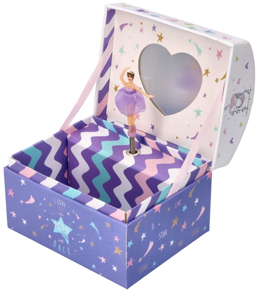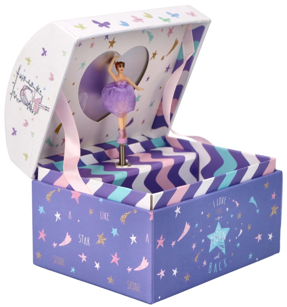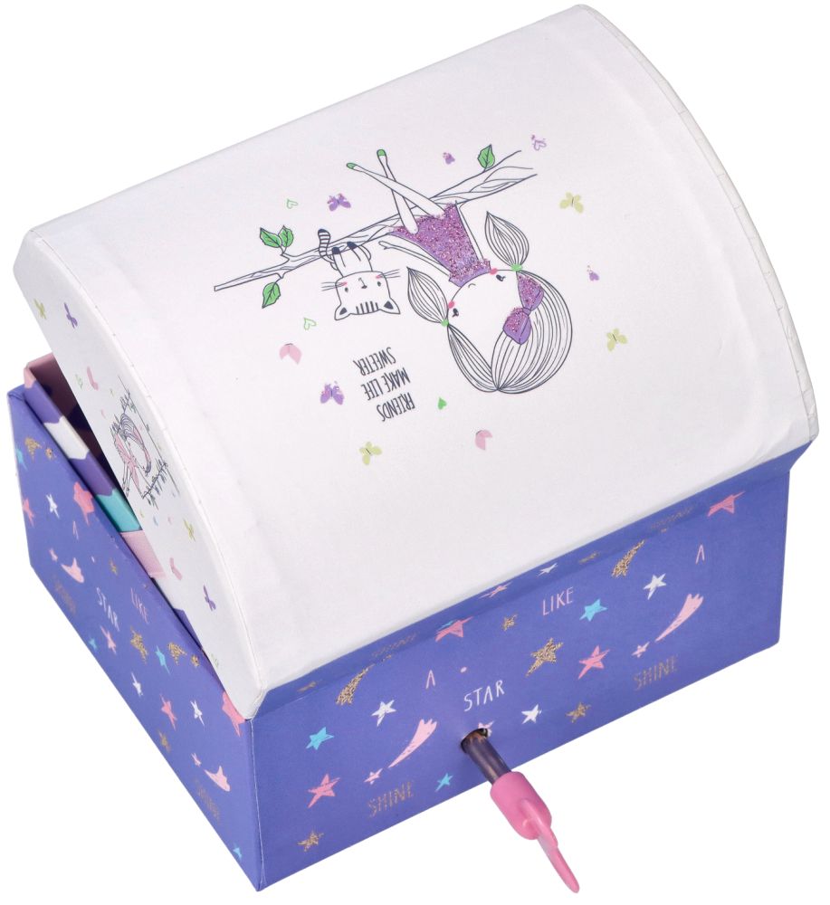 Hrací skříňka Přátelé s motivem dívky a koťátka sedících spolu na větvi. V hlavní roli krásná, třpytivá baletka ve všech barvách duhy. Nádherné šaty, ve kterých je oblečená, dodávají charakter baletky a zrcadlo na zadní stěně působí dojmem, že se účastníme podívané ve velké aréně.