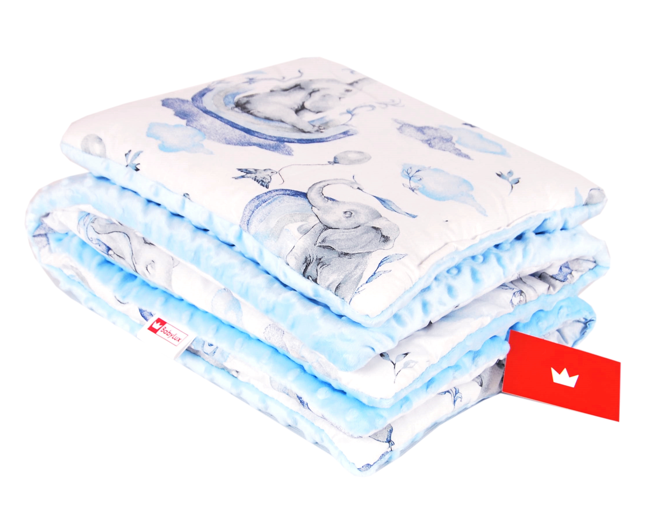 BBL Polštářek + deka do kočárku minky - slon pastelová modrá