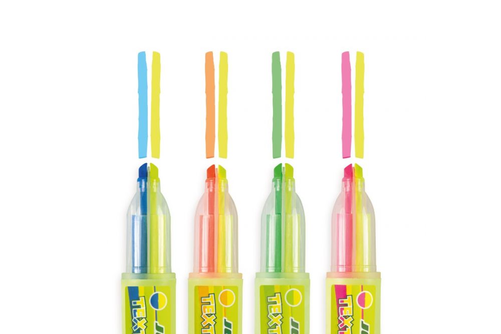 Představujeme vám sadu čtyř zvýrazňovačů s dvojitým hrotem.