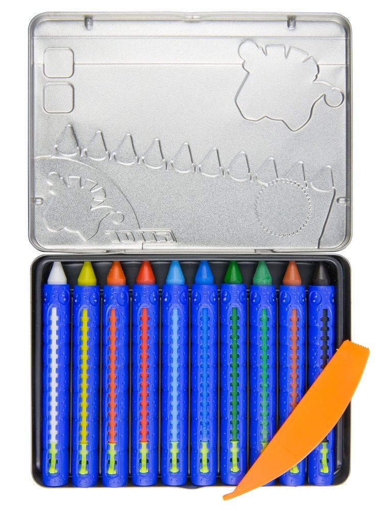 Každá pastelka je balena v ergonomickém posuvném designu, díky čemuž ideálně padne do dětské ruky a prsty zůstávají čisté.