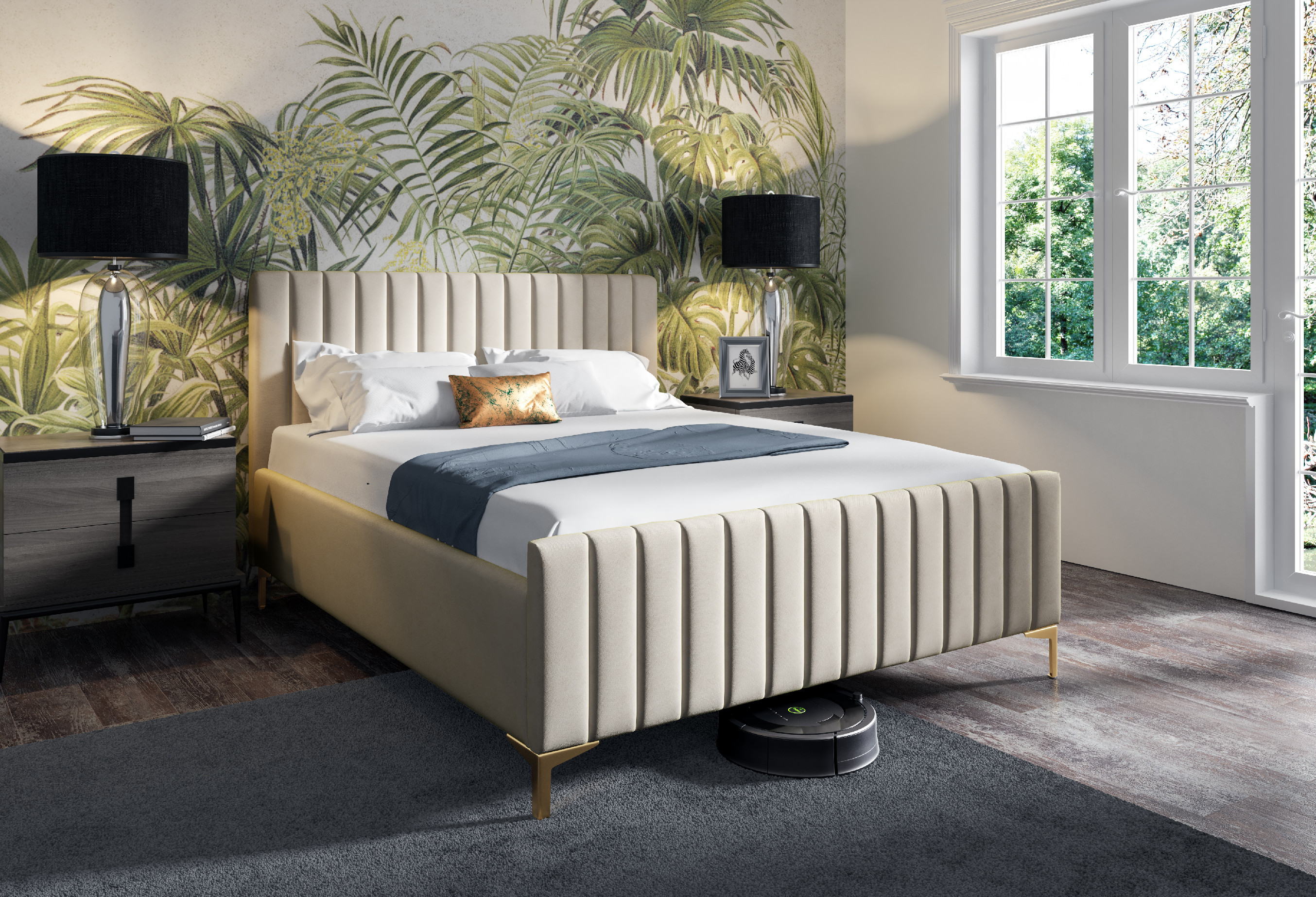 Eka Čalouněná postel SUTRA+ 120x200 cm Barva látky Trinity: (2303) Světlá béžová, Úložný prostor: Bez úložného prostoru