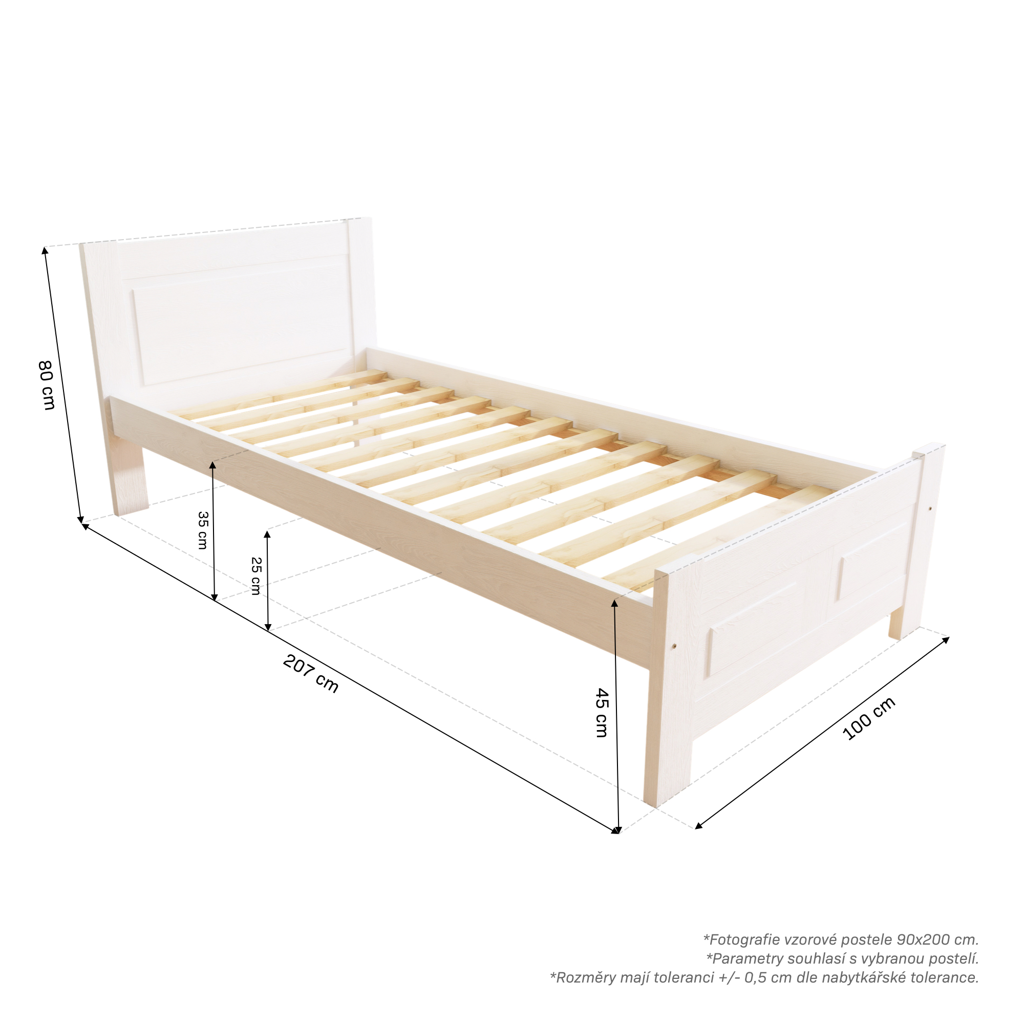 PCZ Postel z masivu Ela 90 x 200 cm - barva Bílá