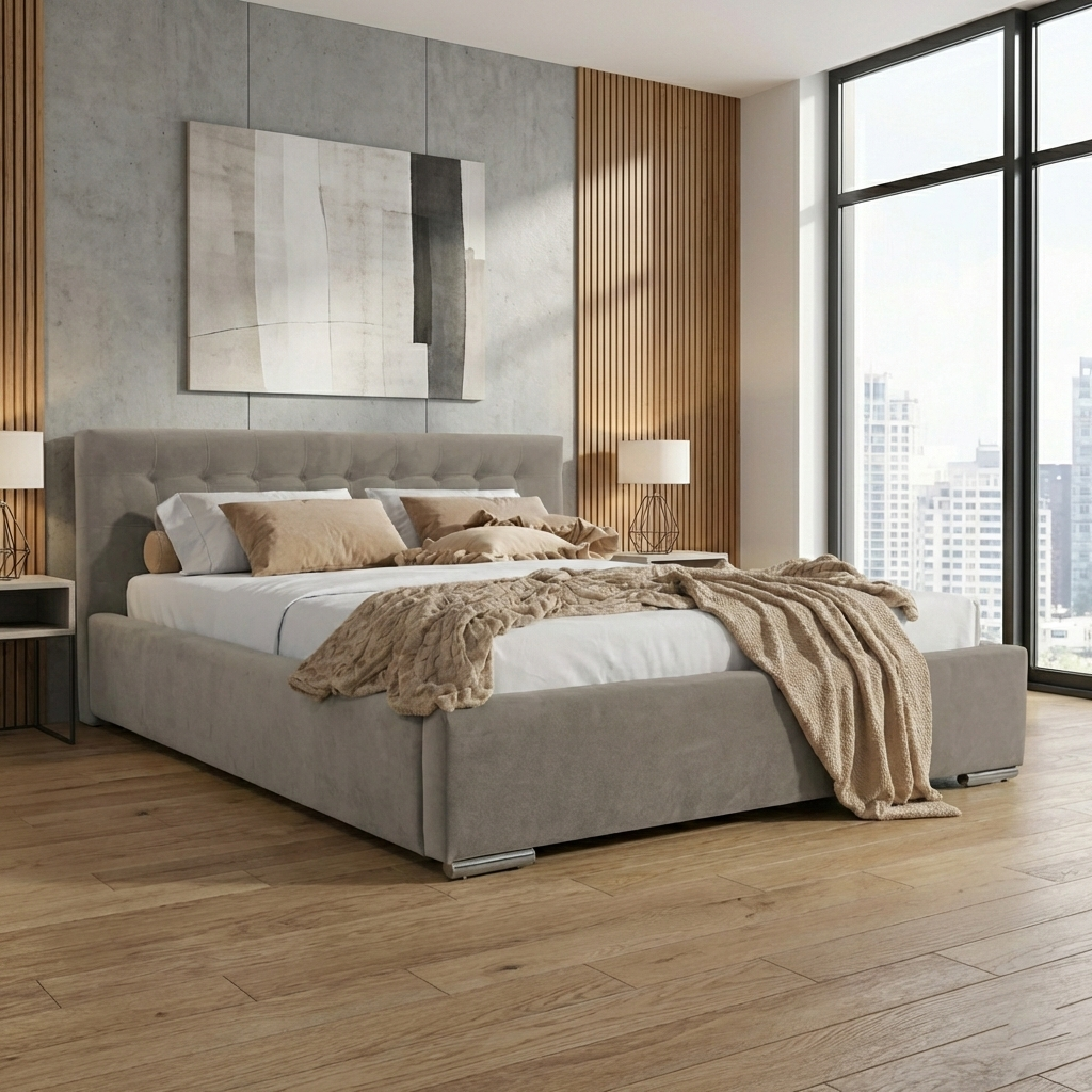 Eka Čalouněná postel Anastasia - Fresh 180x200 cm Barva látky - Fresh: Světlá béžová (02), Úložný prostor: S kovovým rámem úložného prostoru