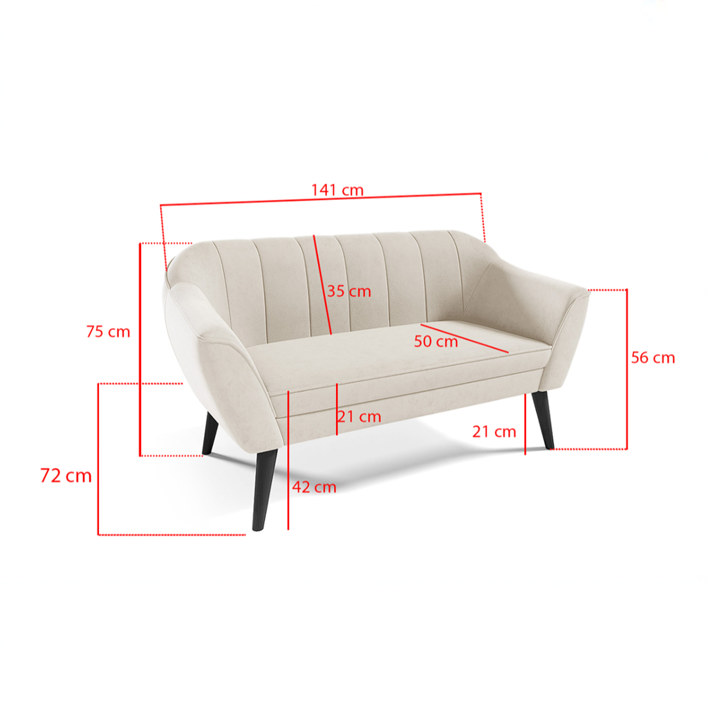 Eka Pohovka KARO, 140 cm Látka Velutto: Velutto 11 - Modrá, Výběr nohou: Bílé