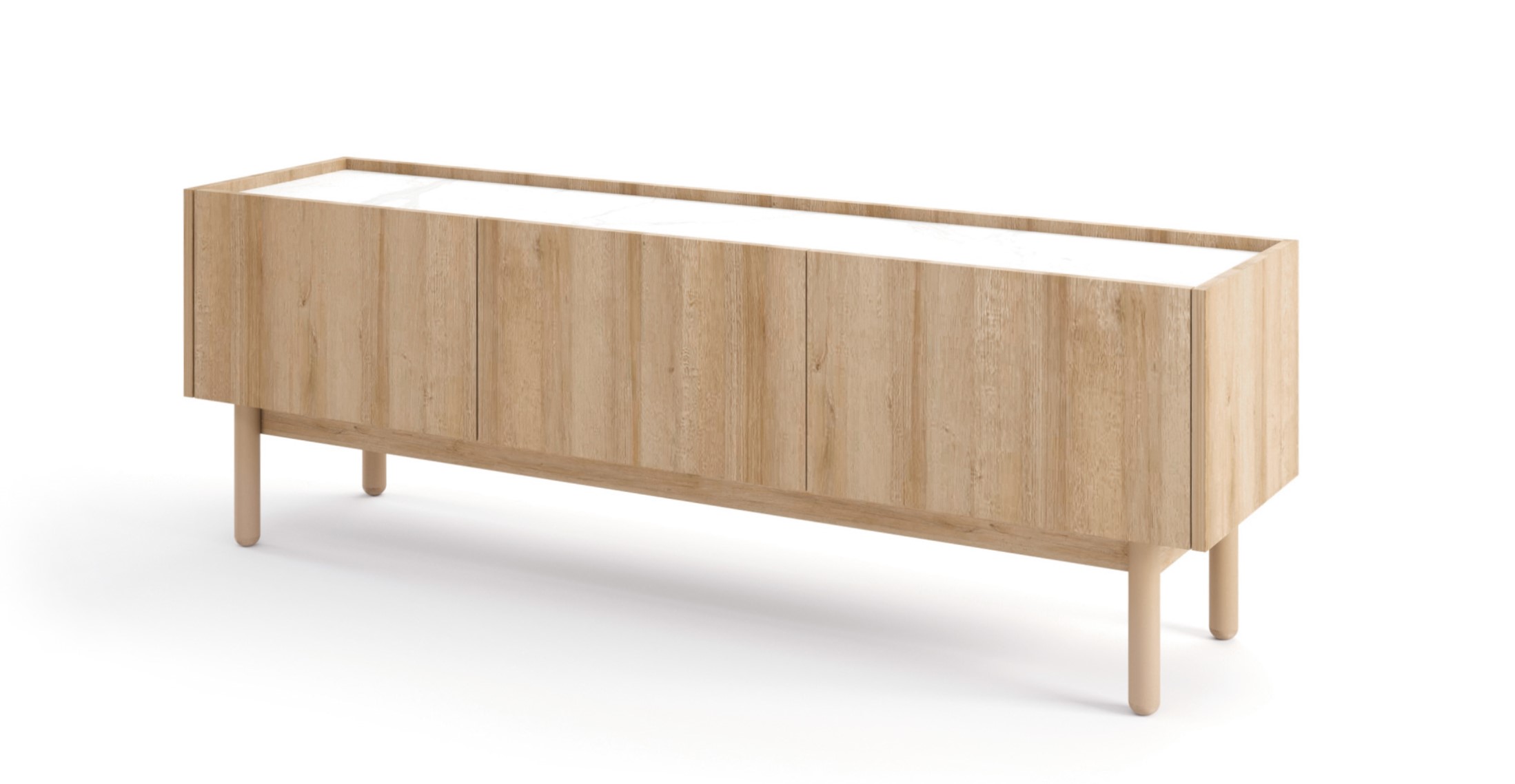 Celá kolekce se skládá ze televizního stolku, tří komod ve dvou velikostech (144 a 97 cm) a nočního stolku.