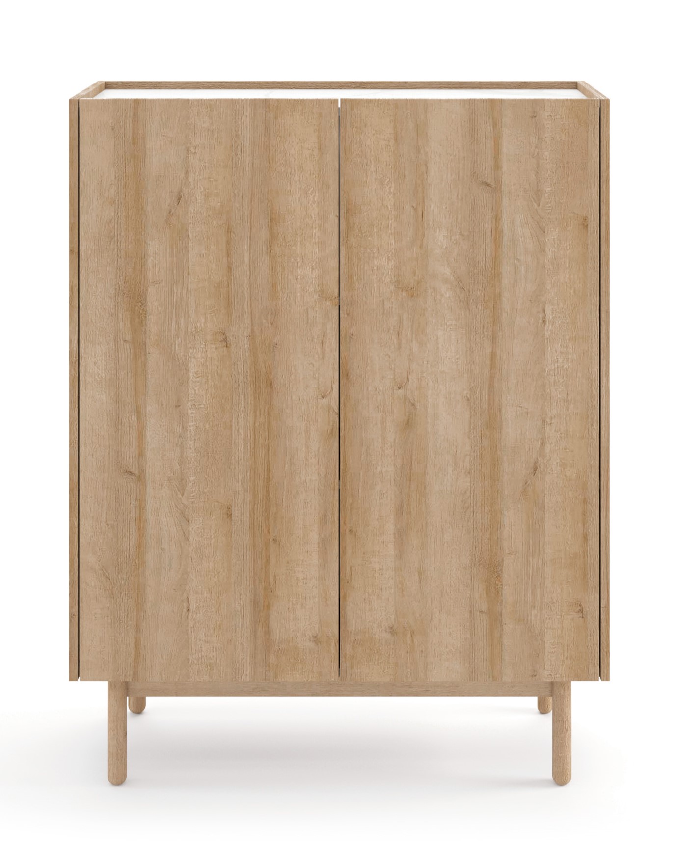 Komoda je široká 97 cm, nabízí dostatek úložného prostoru v podobě dvou uzavřených polic za dvířky. Vrchní plocha poslouží jako skvělé odkládací místo pro dekorace nebo knihy, které nespadnou díky vyvýšeným hranám.