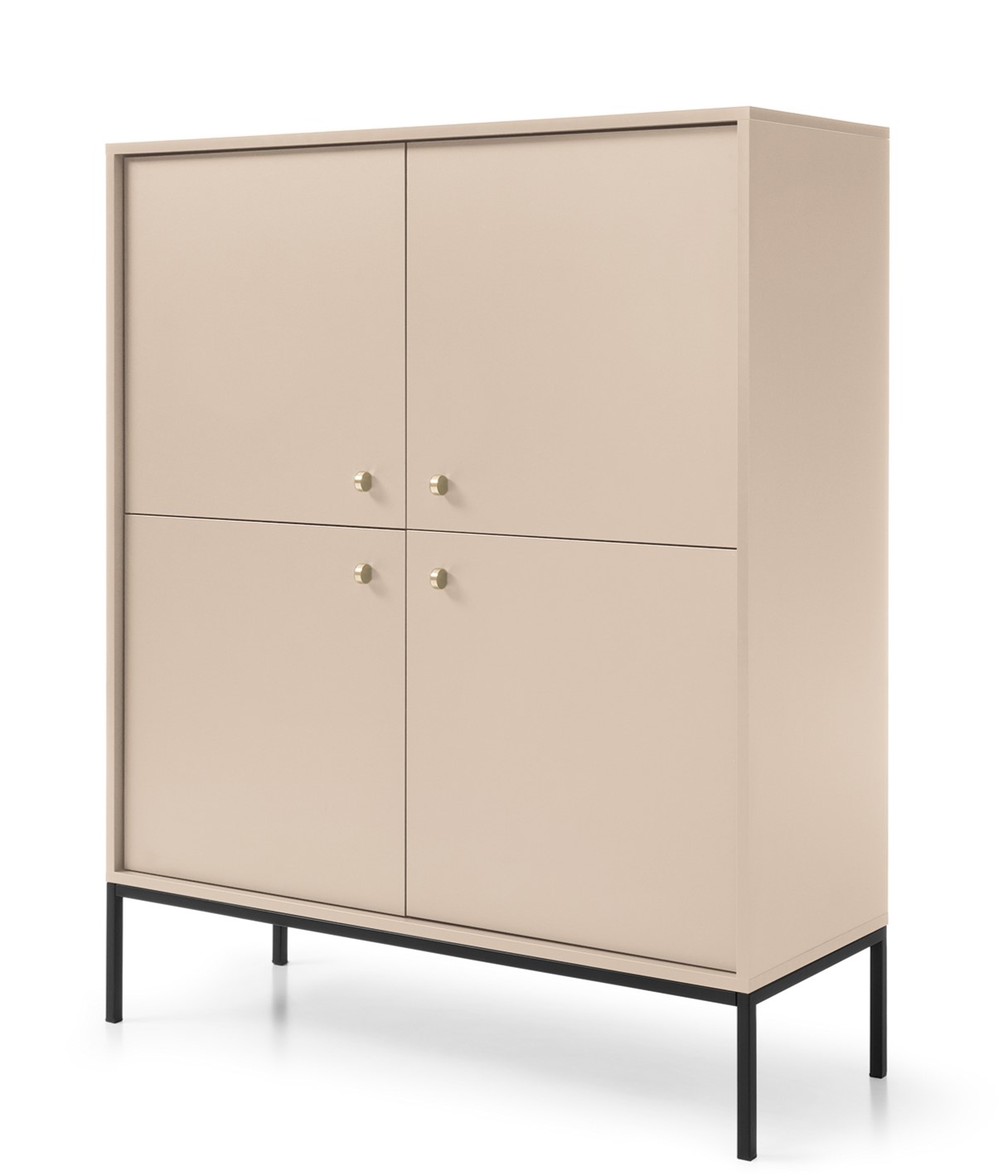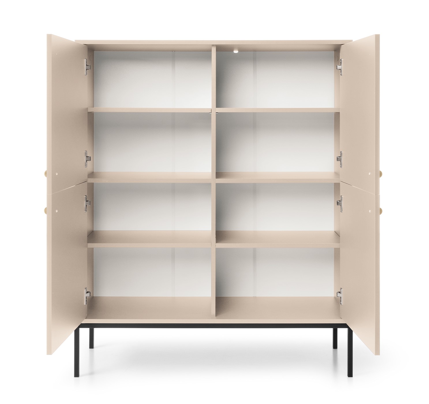 Každý kus nábytku z kolekce NOMO je velice stabilní, jelikož je umístěn na vysokých kovových nohou v černé barvě. Korpus je vyroben z kvalitní laminované dřevotřísky o tloušťce 16 mm v dekoru Béžová.