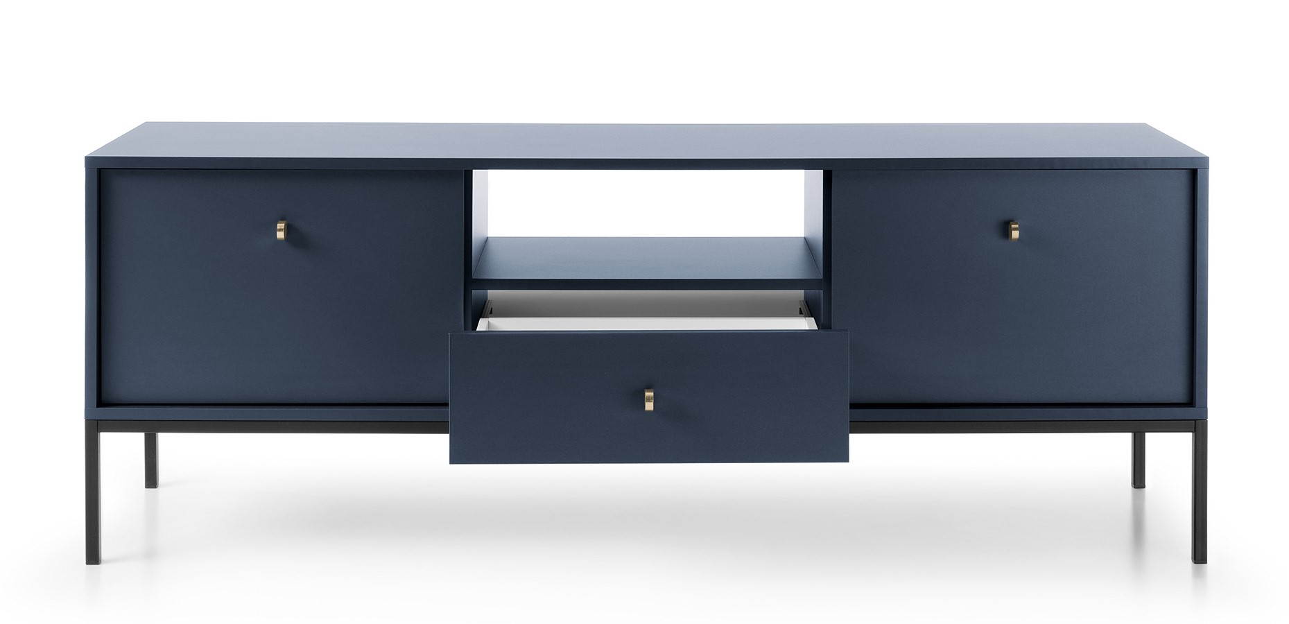 Představte si nejen moderní, ale také funkční kus nábytku, který se stane středobodem Vašeho obývacího pokoje - moderní televizní stolek NOMO. Tento kousek nábytku je dokonalým spojením moderních prvků v dekoru Granat s vysokými kovovými nohami v černé barvě a se zlatými úchytky ve tvaru knoflíků.