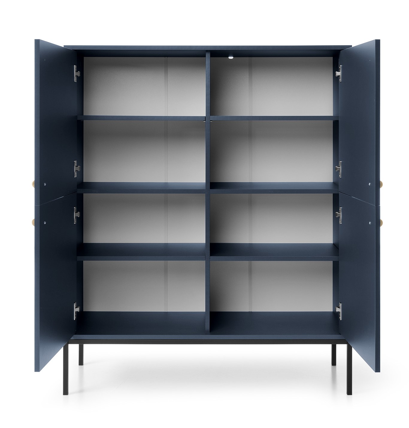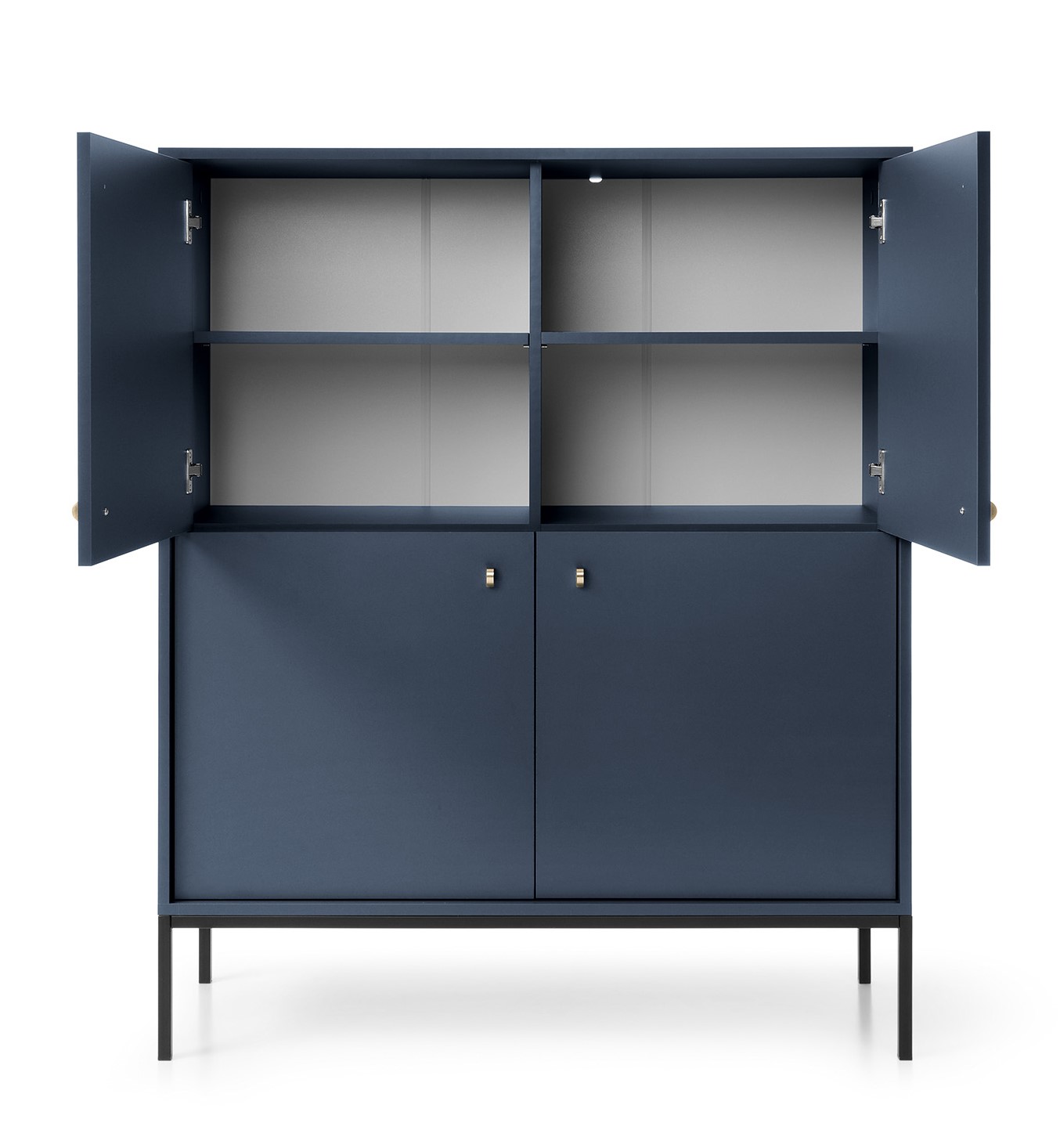 Představte si nejen moderní, ale také funkční kus nábytku, který se stane středobodem Vašeho obývacího pokoje - moderní komoda NOMO. Tento kousek nábytku je dokonalým spojením moderních prvků v dekoru Granat s vysokými kovovými nohami v černé barvě a se zlatými úchytky ve tvaru knoflíků.