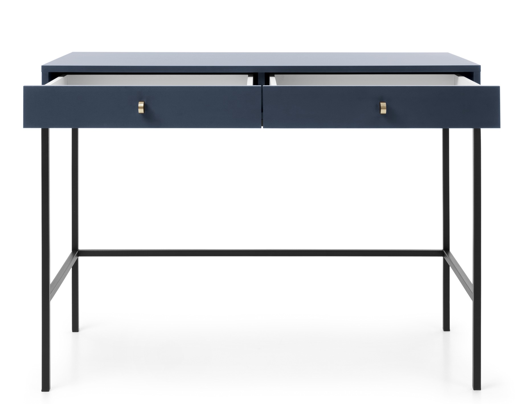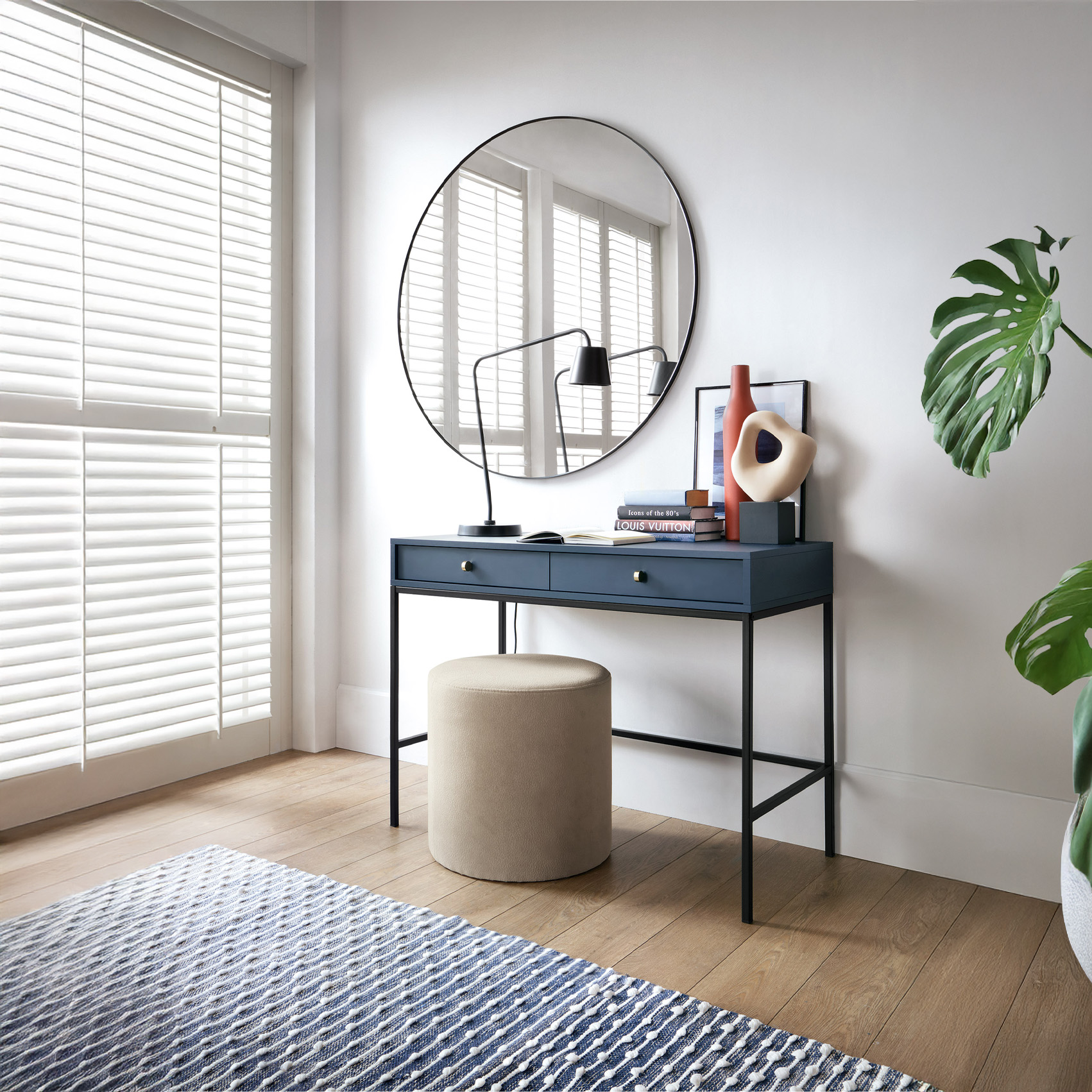 Toaletní stolek je široký 104 cm, nabízí dostatek úložného prostoru v podobě dvou zásuvek a velké odkládací plochy.