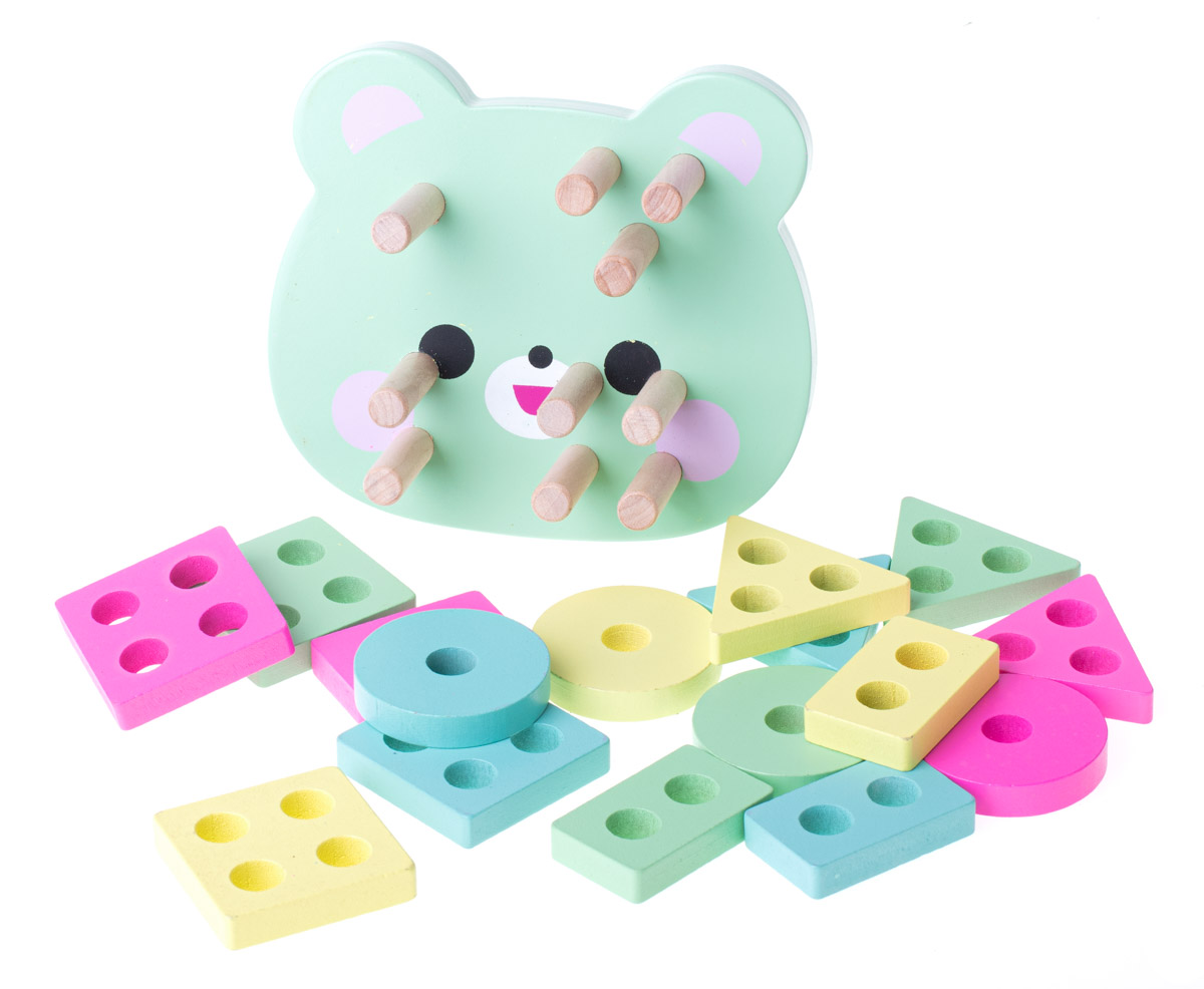 Přiřaďte každý pestrobarevný tvar ke správnému otvoru na základní desce ve tvaru medvídka. Pomáhá rozvíjet obratnost, motorické dovednosti a koordinaci ruka-oko. Fantastická hračka, která učí logickému myšlení a stimuluje kreativitu. Užitečné při učení názvů barev a počítání. Pozitivně ovlivňuje rozvoj manuálních dovedností dítěte.