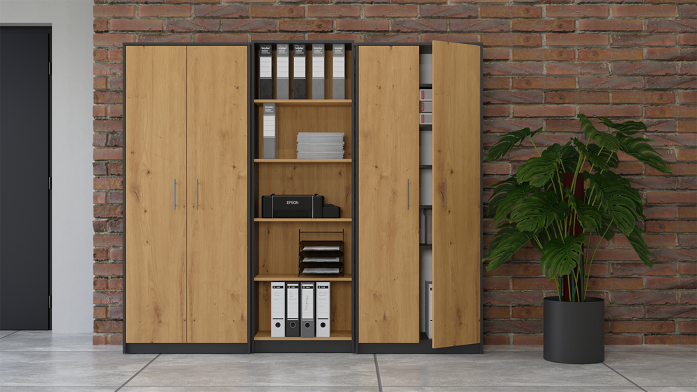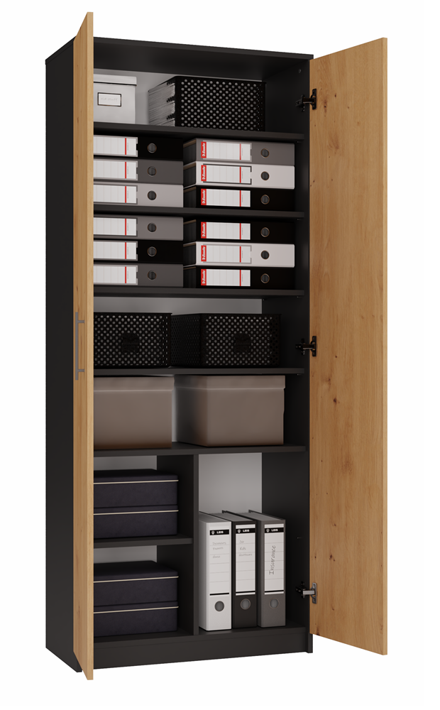 TPS Kancelářská skříň s policemi a dveřmi OLIV 2D - Antracit / Dub artisan