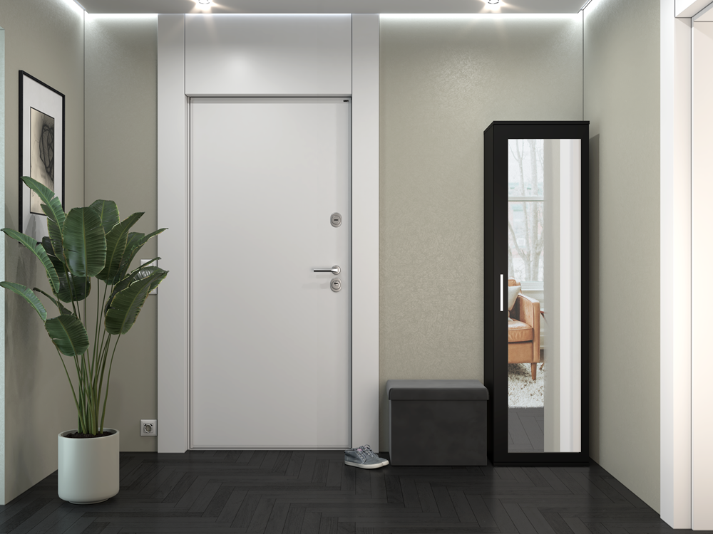 Dveře skříně jsou vybaveny zrcadlem, které vám poskytne praktickou funkci zrcadla a zároveň opticky zvětší vaši předsíň. Tato skříň je vyrobena z kvalitních materiálů, které zajišťují její pevnost a odolnost, a poskytne vám spolehlivé a dlouhodobé uložení vašich věcí v předsíni.
