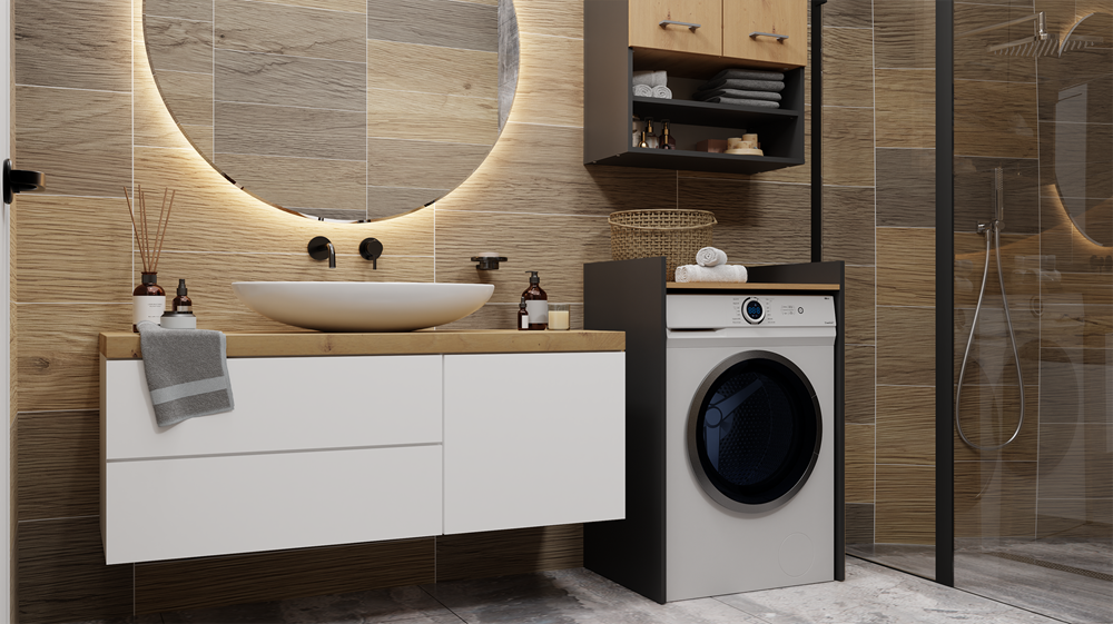 Police nad pračku je praktickým a účelným řešením pro každého, kdo chce využít každý dostupný prostor v koupelně.
