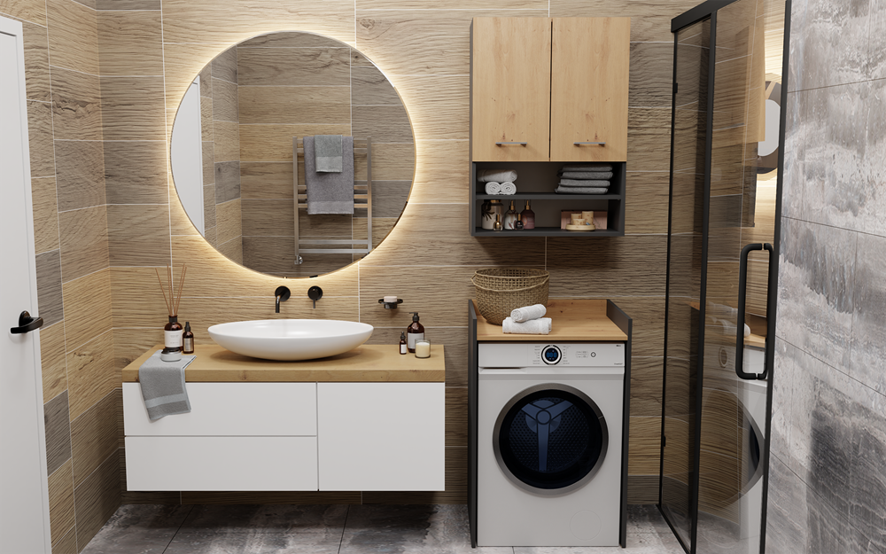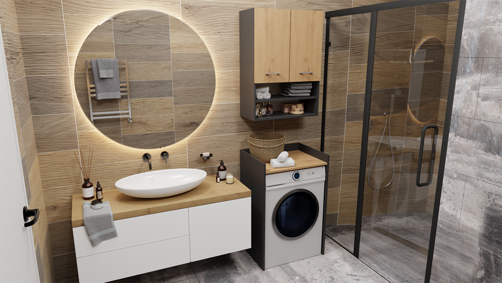 TPS Koupelnová police nad pračku POLA NP - Antracit / Dub artisan