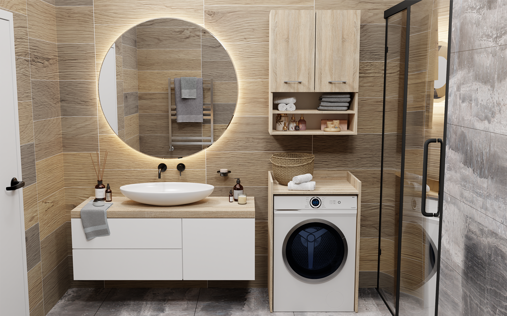 Police nad pračku je praktickým a účelným řešením pro každého, kdo chce využít každý dostupný prostor v koupelně.
