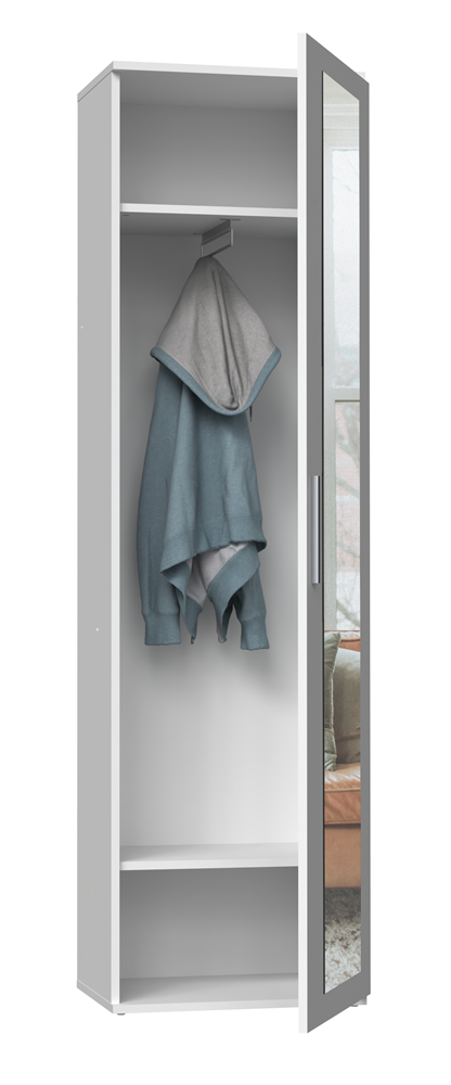 Skříň DUO je ideálním řešením pro ukládání vašich věcí v předsíni. Je vysoká 180 cm a široká 50 cm, takže nabízí dostatek prostoru. Skříň obsahuje dvě police - jednu ve spodní části a jednu v horní části, takže můžete jednoduše organizovat své věci.Pod tou horní částí je navíc tyč pro zavěšení ramínek, což vám umožní snadno uspořádat své oblečení.