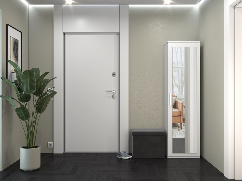 Dveře skříně jsou vybaveny zrcadlem, které vám poskytne praktickou funkci zrcadla a zároveň opticky zvětší vaši předsíň. Tato skříň je vyrobena z kvalitních materiálů, které zajišťují její pevnost a odolnost, a poskytne vám spolehlivé a dlouhodobé uložení vašich věcí v předsíni.
