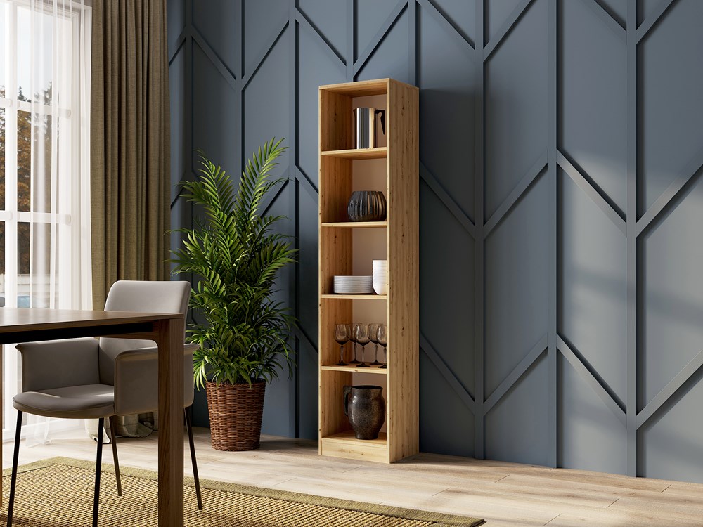 Knihovna je navržena tak, aby se hodila do různých typů prostor a proto je vzhled minimalistický a designový. Skvěle se hodí do každé místnosti jako například obývací pokoj, dětský pokoj, předsíň nebo kancelář.