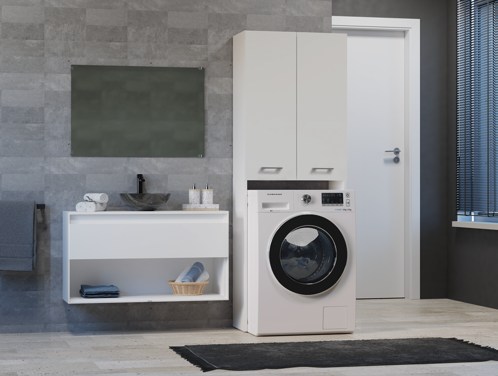 Tento typ skříňky se umisťuje nad pračku a umožní Vám tak využít prostor, který by jinak zůstal prázdný a nevyužitý.