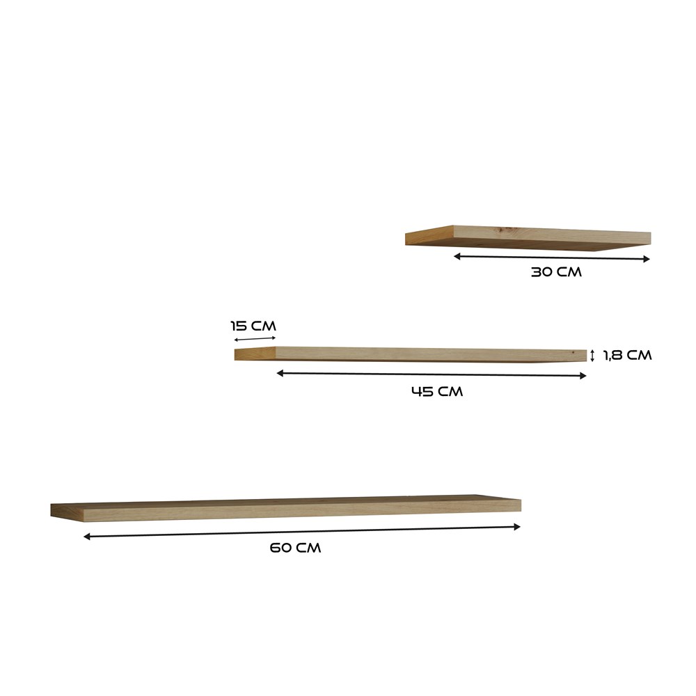 TPS Set nástěnných polic 3v1 TOBI - Dub artisan
