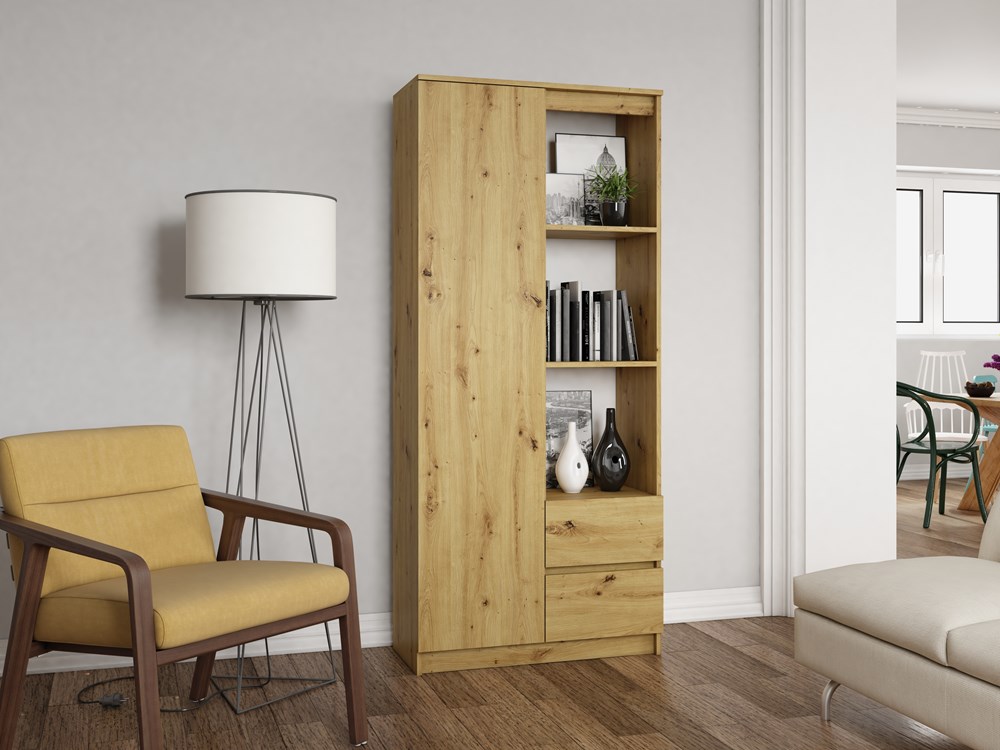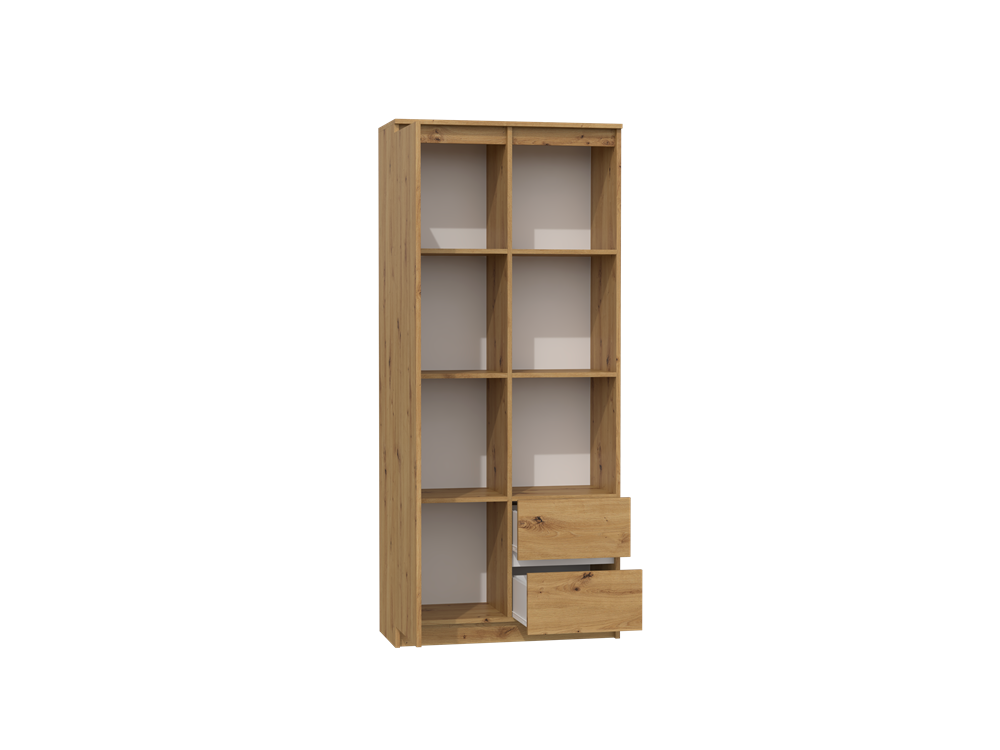 Policová knihovna je ideální pro ty, kteří chtějí ukládat knihy a další předměty na jednom místě a udržovat je při ruce. Knihovna má police i šuplíky, aby se vešly všechny potřebné věci, ale také umožňují ukládání dalších předmětů jako jsou vázy, rámy na fotky nebo dekorativní předměty.